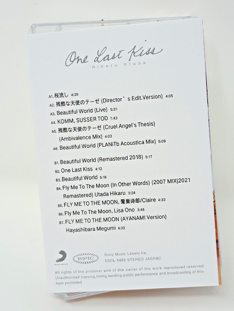 The Cassette Tape - "One Last Kiss" features the artist Utada Hikaru's soundtrack for Neon Genesis Evangelion on an orange cassette format. The cassette contains music from the animation score/soundtrack genre, specifically from the anime series Neon Genesis Evangelion. Fans of the series and collectors of physical music formats will appreciate this unique cassette tape release of the soundtrack.