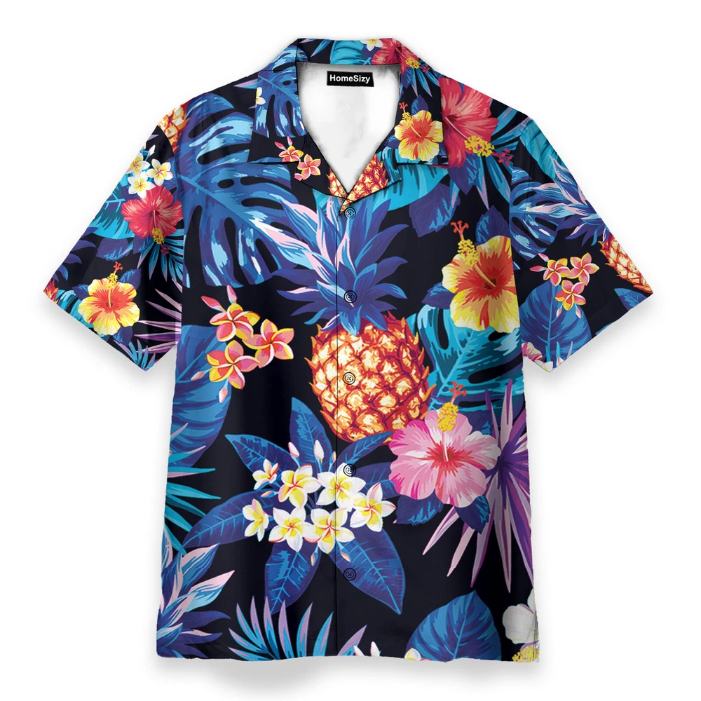 Neon Pineapple With Tropical Flowers Hawaiian Shirt