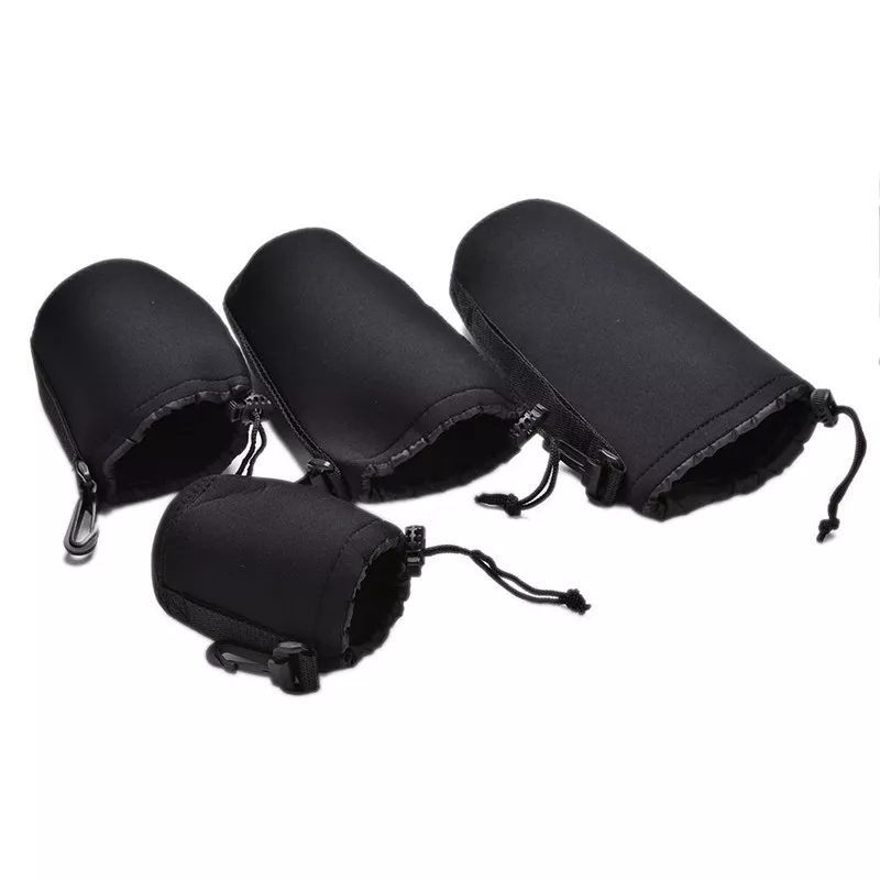 Description This lens pouches are made of neoprene, the same material used to protect scuba divers from tharsh sea This neoprene lens pouch is very soft and elastic, but durable to hold and protect your lens. 3mm thick (roughly) Neoprene - provides great protection and shock absorption for your lenses. Belt Loop - allows you attaching the pouch to your belt, for convenient carrying. Hook - allows you attach the pouch to anywhere with a ring (such as camera bags and backpacks). Specifications: Model : Neoprene Lens Pouch / Case (S M L XL) Material: Water-resistant neoprene Color: Black Diameter x height S(80mm x 100mm) M(95mm x 140mm) L(100mm x 180mm) XL100mm x 240mm) Package includes: 1 x Neoprene Lens Pouch / Case Preview: