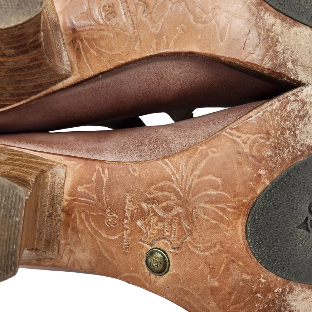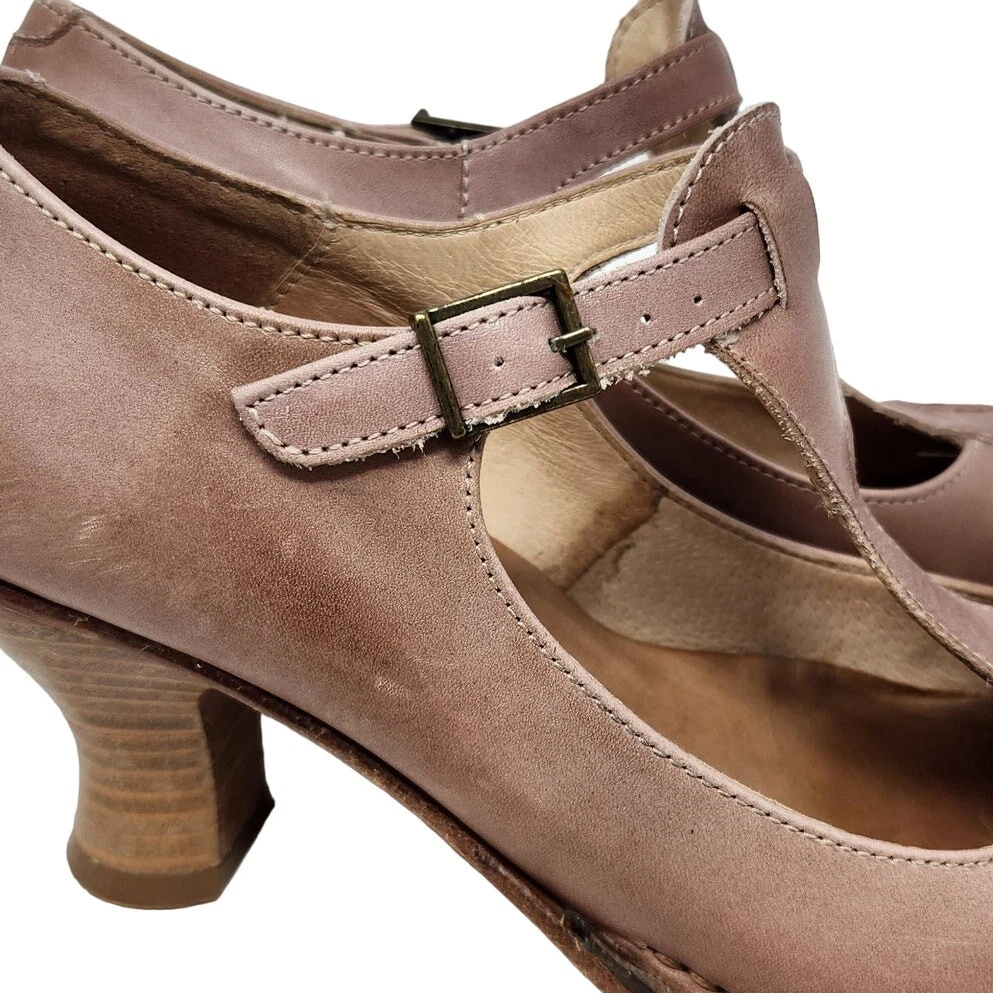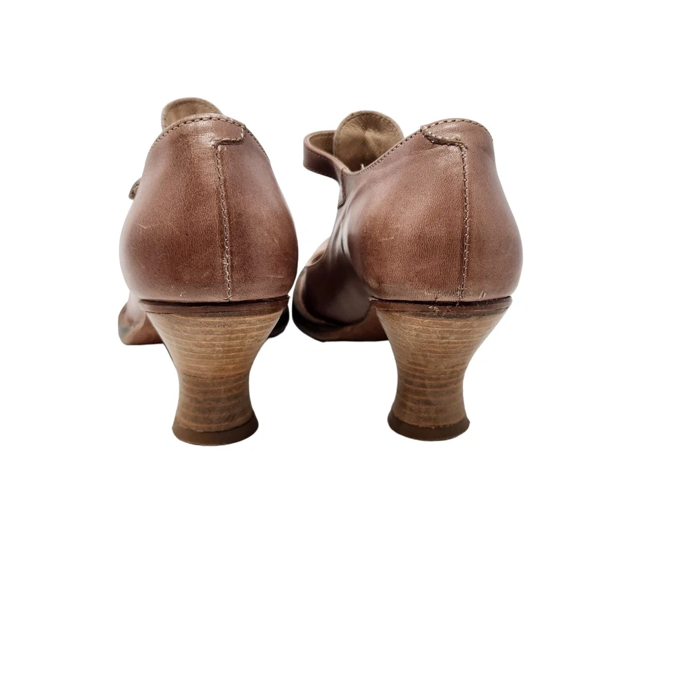 condition: Excellent used condition, minor signs of wear as shown in photos heel measures 3 inches Features: Rounded toe Adjustable buckle straps Stacked heel Closed toe Upper : Leather Lining : Leather Insole : Leather Sole : Leather and Synthetic tags: baroque grunge goth whimsigoth fairycore glam feminine coquette minimal festival renaissance cosplay ren fair renfair medeival maiden bard the witcher costume retro girly cute going out