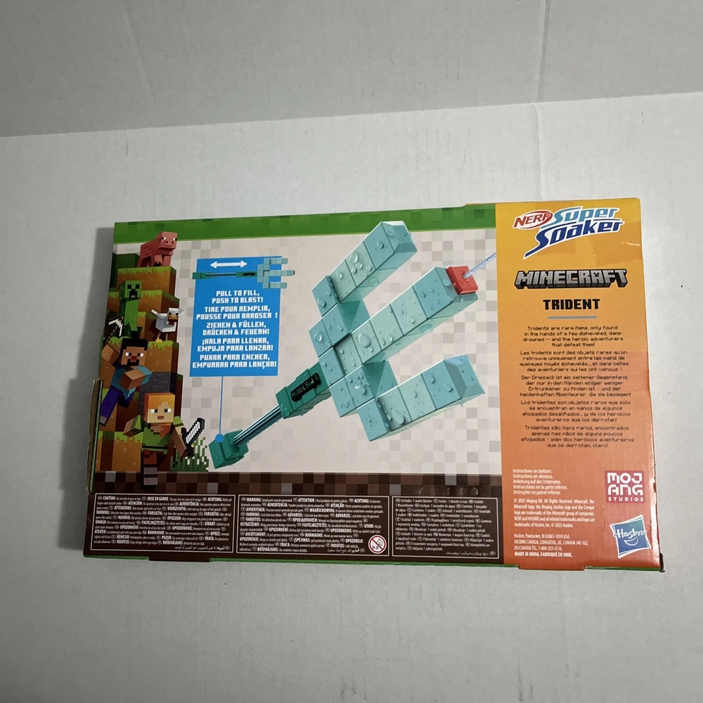 Experience the ultimate fun with the Nerf Super Soaker Minecraft Trident Water Blaster. This amazing toy is perfect for kids who love outdoor playtime. With its pull-back plunger handle, you can easily aim and shoot water at your friends and family. Crafted by NERF, this water blaster is made with high-quality materials to ensure durability and longevity. It is recommended for children aged 6 and above, and it is sure to provide hours of entertainment. The Minecraft character family adds an extra layer of coolness to this toy, making it a must-have for any young fan. Get ready for endless summer adventures with the Nerf Super Soaker Minecraft Trident Water Blaster! ——Please see pictures above for the items description all pictures are taken in house. We 100% guarantee the item or items are as described or detailed in the pictures if you are not 100% satisfied with your order, please reach out. We offer free or flat rate shipping on all orders. The shipping details are located above in the shipping price box. Returns are excepted on all qualifying items, see details above for return eligibility. We committed to a safe and professional delivery of your item/items. We are also doing our part to provide a safe planet for the future of humanity. That being said Some of our products may be shipped with packaging or boxes that is regenerated back into the packing system of America consumer. If you would like your product shipped in a new box, please feel free to reach out and I I will do my best to accommodate you at no extra cost. Do not hesitate to reach out with any and all questions,comments or concerns related to products purchased or products for sale. Thank you and have a great day. SKU #400