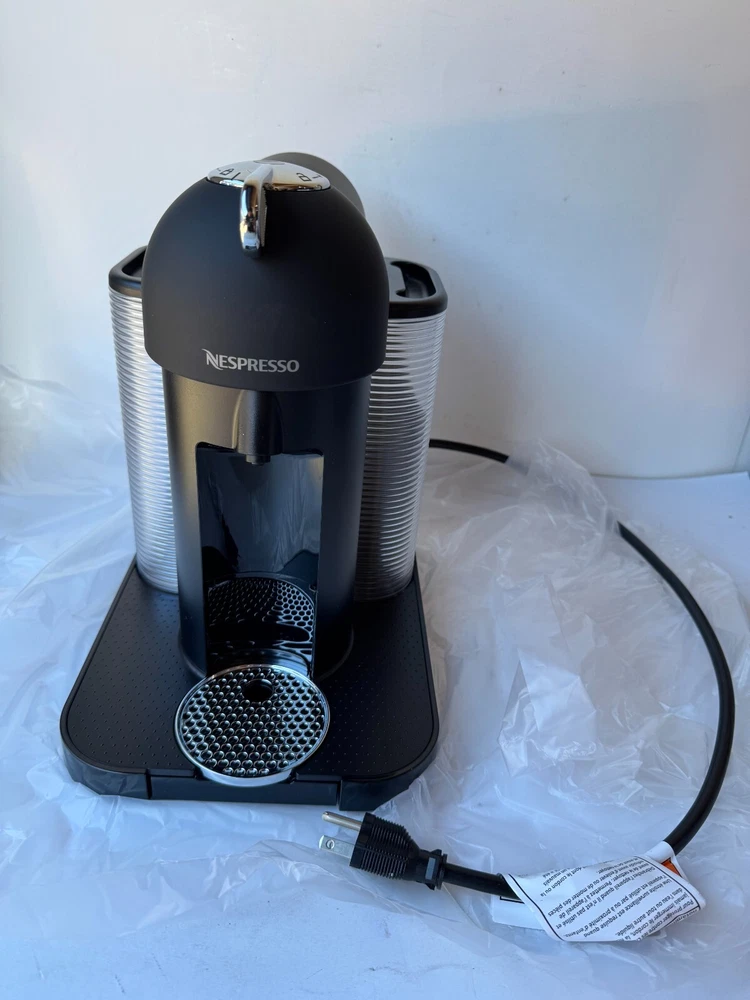 Nespresso Vertuo Coffee Espresso Machine Matte Black Auto Shut-off Programmable Description Nespresso Vertuo Coffee Espresso Machine Matte Black Auto Shut-off Programmable . Product Detail • Brand : Nespresso • Model : Nespresso Vertuo • Color: Black • Type : Coffee & Espresso Machine Please message me if you have any questions.