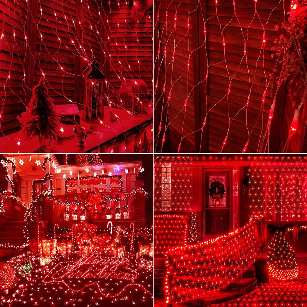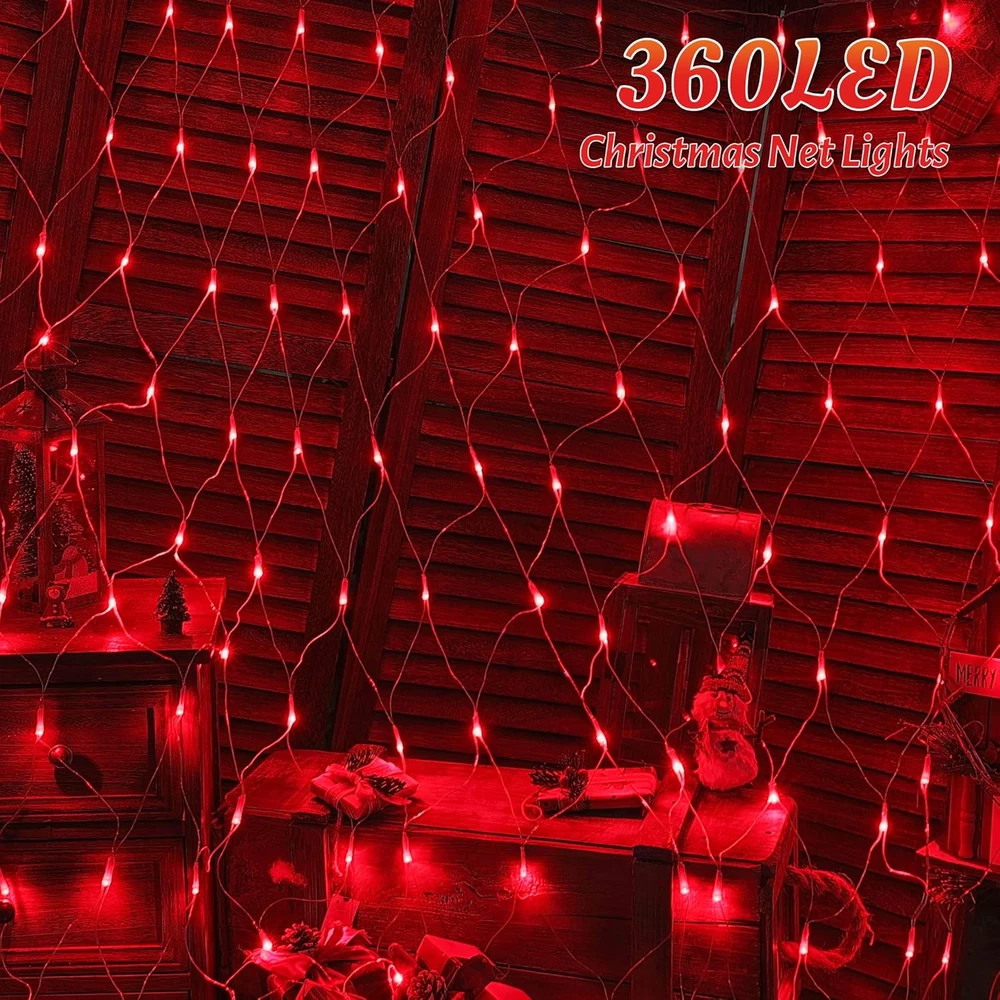Net Mesh String Lights, 360LED Red Light Bulbs, 8 Lighting Modes, for Indoor Out