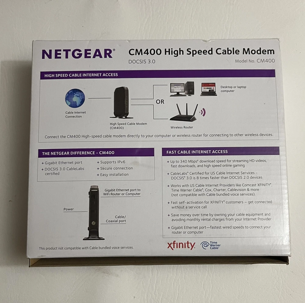 HomeNetgear CM400 Docsis 3.0 Cable Modem New - Open Box
