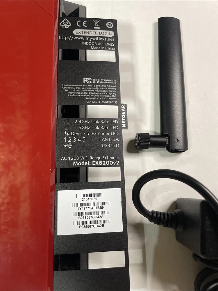 This Netgear EX6200 Desktop Dual Band Wi-Fi Range Extender is the perfect addition to your home networking setup. With a sleek black design, this unit supports 2.4 GHz and 5 GHz frequency bands and features dual-band connectivity. It also has wireless Wi-Fi 802.11a, 802.11b, 802.11n, 802.11ac, and 802.11g connectivity, making it easy to connect to any device. The unit has a maximum LAN data rate of NAA and a maximum wireless data rate of NAA. It has one antenna and does not require any cables. This Netgear EX6200 is ideal for boosting your home network signal and expanding your Wi-Fi range. . Plugged in light came on but I dont know if it works properly as is.