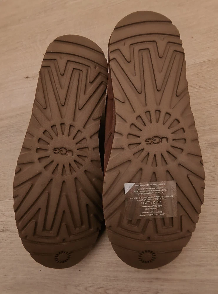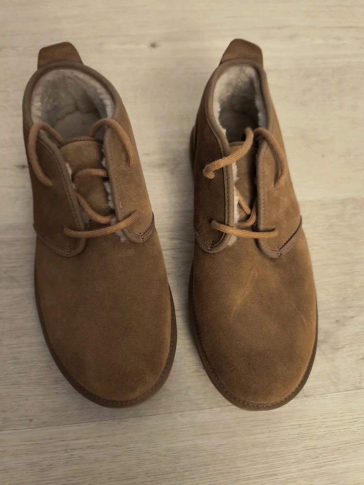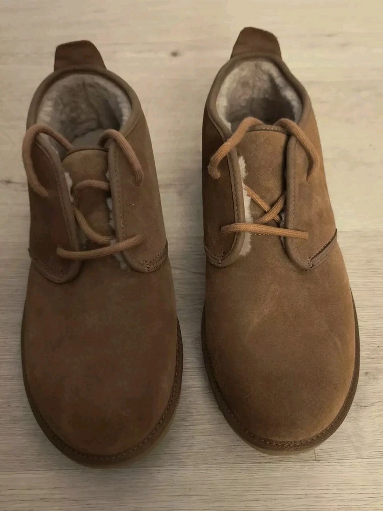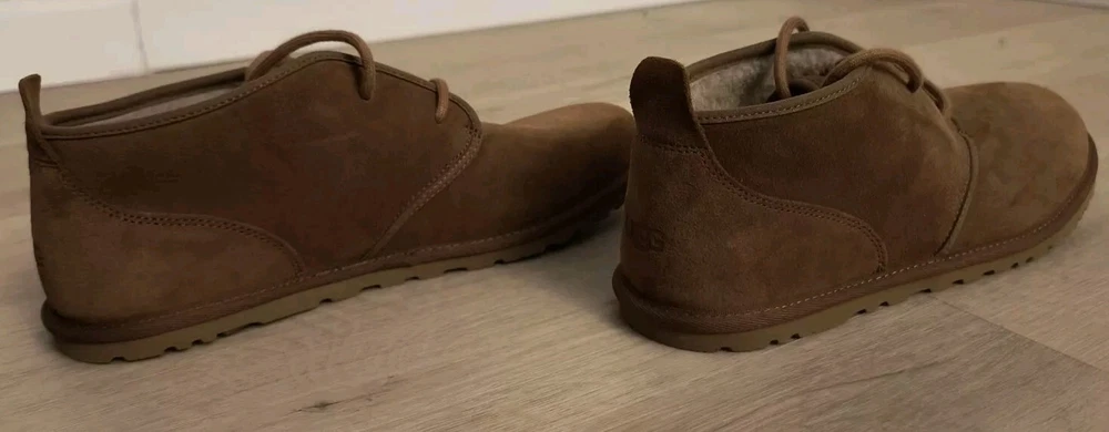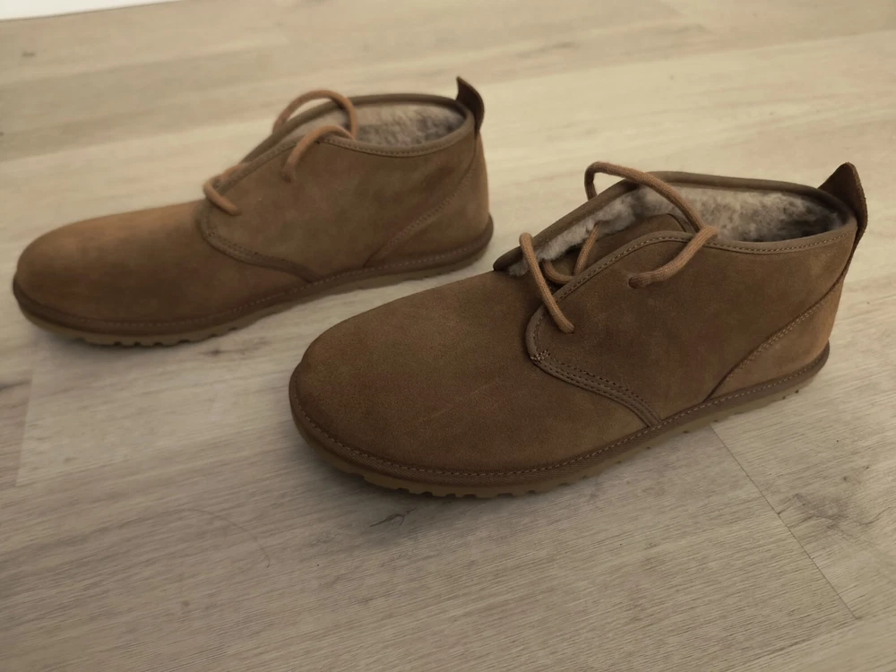 Neumel Chukka Boot (Men) UGG® Sz9 Naturally breathable UGGpure or UGGplush faux fur lines a classic chukka boot grounded by a lugged sole. Well cushioned, it works well indoors as a slipper, too. UGGpure is a textile made entirely from wool to feel and wear like genuine shearling; UGGplush is a moisture-wicking textile made from a wool-rich blend but crafted to feel and wear like genuine shearling. Lace-up style Leather or leather and textile or textile upper/textile faux fur or UGGpure wool or UGGplush wool-blend lining/EVA sole Imported This garment was made in a factory that supports women worker empowerment through HERproject, which creates partnerships to enable workplace-based interventions on health, financial inclusion, and gender equality