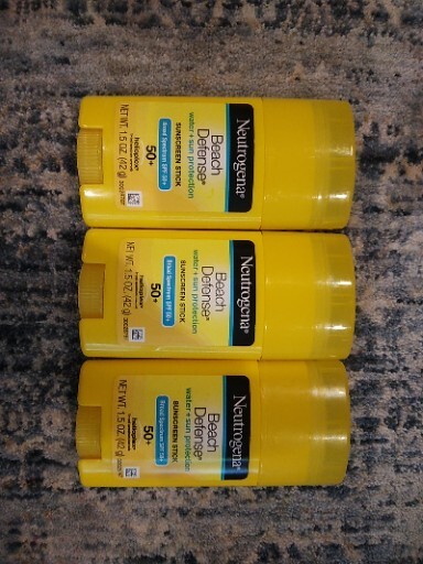 3 Neutrogena Beach Defense Sunscreen Stick SPF50+ 1.5 oz Water Resistant.
