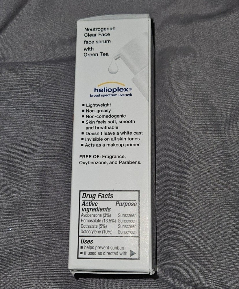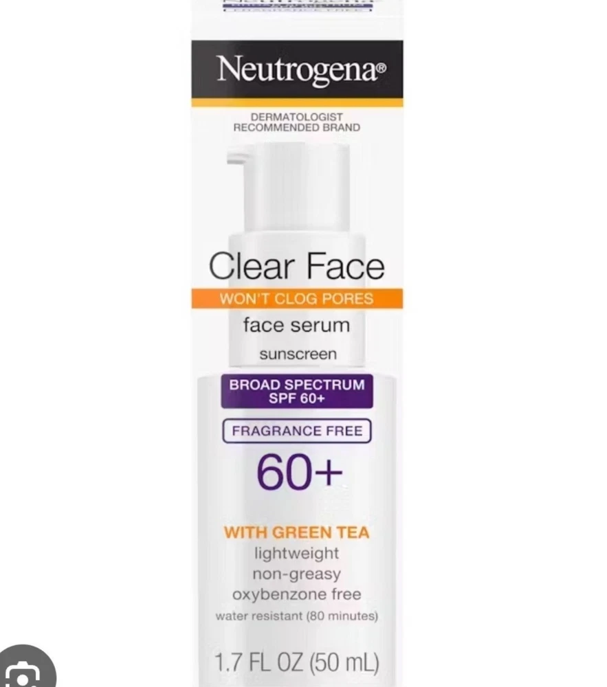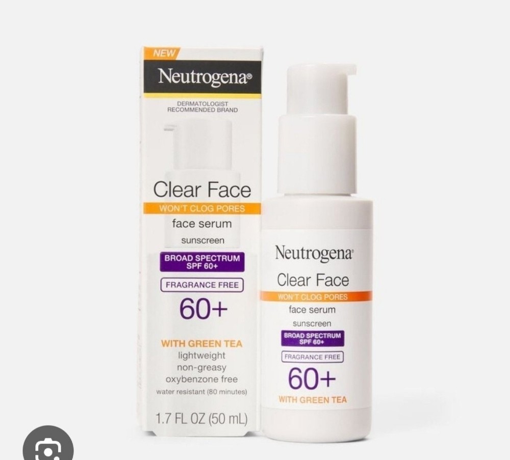 Neutrogena Clear Face face serum sunscreen SPF 60 1.7ml BNIB. ☆Neutrogena Clear Face Face Serum Sunscreen Broad Spectrum SPF 60 1.7ml BNIB • Fragrance free •With green tea •Broad spectrum SPF 60 UVA/UVB protection helps prevent sunburn. • Formula leaves skin feeling soft & smooth while providing breathable protection. • Lightweight facial sunscreen works as a makeup primer for smoother application. • Non-greasy face serum is invisible on all skin tones & won't leave behind a white cast. • Quick-drying formula free of fragrance, parabens, and oxybenzone. • Exp. 9/26 BNIB #neutrogena #skincare #serum #sunscreen #spf60 #makeupprimer #quickdrying #broadspectrum #greentea #lightweight #fragrancefree