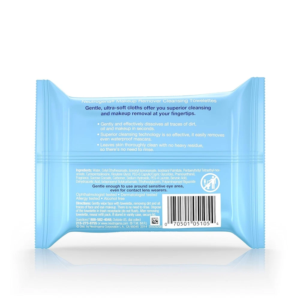 Neutrogena Pre moistened, Makeup Remover Wipes, and Face Cleansing Towelettes, 25 Count (Pack Of 12) Neutrogena Makeup Remover Face Wipes. These soft and gentle pre-moistened facial cleansing wipes effectively dissolve all traces of dirt, oil and makeup--even waterproof mascara for clean, fresh looking skin every day. Our waterproof makeup remover features an effective micellar-infused, triple emollient formula that leaves skin feeling refreshed, nourished, conditioned and refreshingly clean with no heavy residue. About this item Ultra soft, pre-moistened Neutrogena Makeup Remover Wipes to gently cleanse skin & remove makeup Remove makeup & effectively cleanse skin in one easy step with these facial cleansing wipes 100% plant based wipes remove dirt, oil, makeup, sweat, sunscreen & pollution on skin Disposable face wipes thoroughly cleanse skin with no heavy residue, so there's no need to rinse Removes makeup --even stubborn waterproof mascara--with these makeup remover wipes Gentle on skin, they are formulated without phthalates, parabens, sulfates, alcohols, soaps, or dyes Makeup remover wipes effectively dissolve 99.3% of most stubborn makeup and even waterproof mascara Gentle cleansing wipes are specially formulated to be gentle enough for sensitive eye area and contact lens wearers Burt’s Bees Micellar Makeup Removing Towelettes gently cleanse and rejuvenate your skin, and are Dermatologist and Ophthalmologist tested These wipes are infused with coconut and lotus water and are formulated without any parabens, phthalates or petrolatum Ingredients Water, isononyl isononanoate, isostearyl palmitate, cetyl ethylhexanoate,cyclopentasiloxane, pentaerythrityl tetraethylhexanoate, hexylene glycol, PEG-6 caprylic/capric glycerides, phenoxyethanol, sucrose cocoate, carbomer, PEG-4 laurate, fragrance, sodium hydroxide, benzoic acid, dehydroacetic acid, iodopropynyl butylcarbamate, ethylhexylglycerin