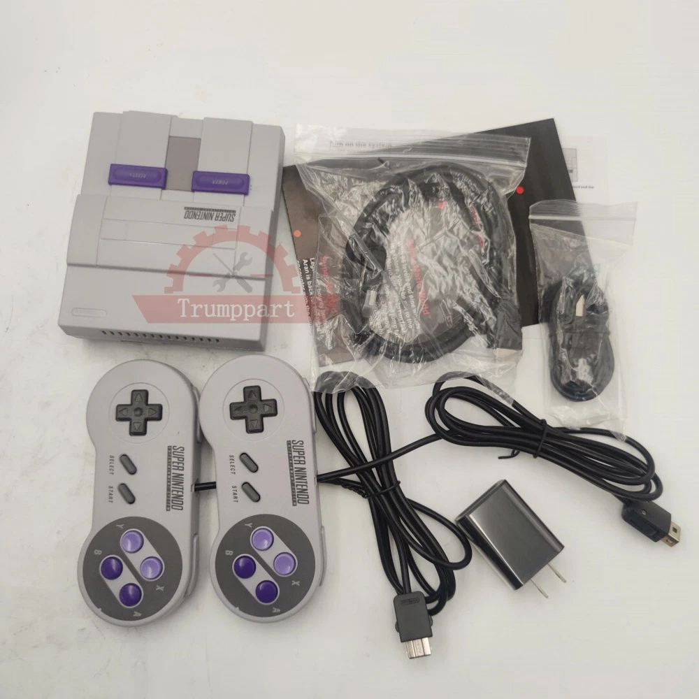 Product Description Includes everything You need to use it: SNES Console 2 Controllers HDMI Cable Power Adapter and Charging Cord Box and Manual List Of Games: Contra III The Alien Wars Donkey Kong Country EarthBound Final Fantasy III F-ZERO Kirby's Dream Course Kirby Super Star Mega Man X Secret of Mana Star Fox Street Fighter II Turbo: Hyper Fighting Super Castelvania IV Super Ghouls'n Ghosts Super Mario Kart Super Mario RPG: Legend of Seven Stars Super Mario World Super Metroid Super Punch-Out!! The Legend of Zelda: A Link of the Past Yoshi's Island StarFox 2 Note Please check and confirm these things fits yours before buying. If you can't install, please get professional maintenance staff to help you install. Instruction manual is NOT INCLUDE. Shipping Returns Contact Us Handling time may 1-2 working days after payment . We will ship as soon as possible.Delivery time is mainly based on the shipping carrier selected .Some remote area may be delayed . Please make sure your address on eBay is matched with your shipping address before you pay. You can track your package by clicking the tracking number which we uploaded to ebay . Return is accepted within 30 days after the buyer receiving the item. If you need return, let us know the detailed problem and send us some pictures for confirmation. Then get a address for return or refund . Please do not hesitate to CONTACT US. You can message 24/7 on eBay for all questions and inquiries. We will get back to you within 1-2 business days at the latest. Shipping Handling time may 1-2 working days after payment . We will ship as soon as possible.Delivery time is mainly based on the shipping carrier selected .Some remote area may be delayed . Please make sure your address on eBay is matched with your shipping address before you pay. You can track your package by clicking the tracking number which we uploaded to ebay . Returns Return is accepted within 30 days after the buyer receiving the item. If you need return, let us know the detailed problem and send us some pictures for confirmation. Then get a address for return or refund . Contact Us Please do not hesitate to CONTACT US. You can message 24/7 on eBay for all questions and inquiries. We will get back to you within 1-2 business days at the latest. powered by