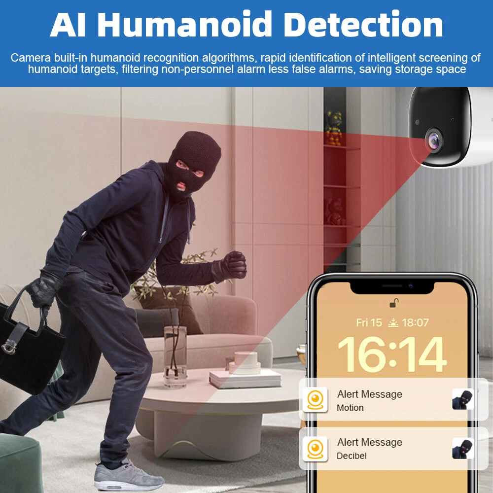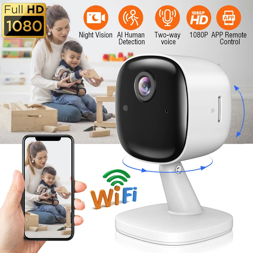 Features • 1080P Full HD video quality, live streaming and viewing recordings • Advanced motion detection distance up to 5 meters. • Wide viewing angle, see more at every moment • WiFi wireless connection • Support MicroSD card local storage, up to 256GB • Support two-way audio between mobile phone and camera • The camera can rotate 360° horizontally freely • Support 7X24H video recording, never miss every moment • Provide free APP, support remote viewing on iOS or Android • Cloud storage for motion detection recording (optional) • Powered by universal power adapter (Type-C port, DC5V/1.5A) • Secure AWS and free local storage help】 * Our indoor cameras use the most advanced military-grade encryption technology to ensure that your data is protected on our secure cloud servers. * Rest assured that even in the rare event of theft, your privacy will remain intact. * In addition, this home security camera also provides free local storage support via Micro SD card (up to 256G, not included), allowing you to store footage conveniently and safely.