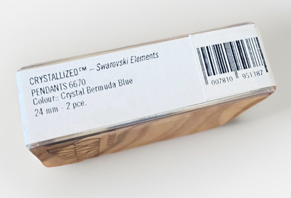 New 2pc Swarovski CRYSTAL LIZED #6670 Bermuda Blue 24mm Crystal Pendants