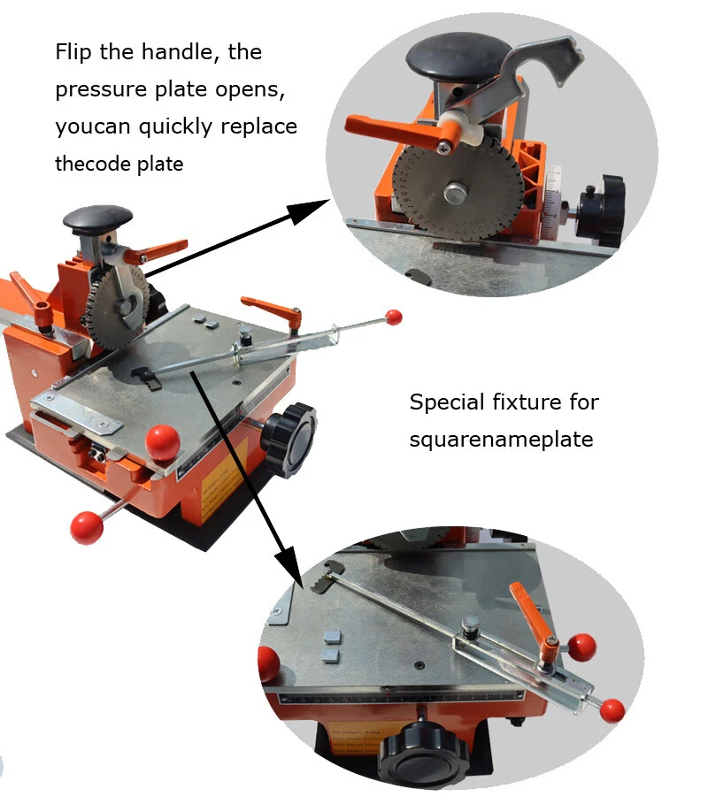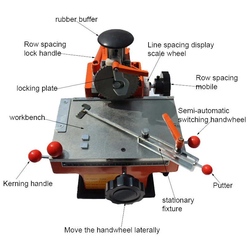 新建网页 2 Semi-automatic Metal Nameplate Marking Machine This semi-automatic sheet emboss on all types of aluminum, copper, stainless steel, plastic tag for mechanical, electrical, pumps, valves, automobiles, motorcycles, electrical appliances. It embosses variable parameters: such as dog tag, specific model, date, batch number, serial number, serial number and so on. Product Details Net Weight: 8.5kg Print Depth:0.1mm-0.3mmPrint Range:170mmX130mmFont Height:2mm-6mm(Optional) Size:12.6in*11.8in*9.9in Platform Size: 6.7in*5.3in Typing Speed:2-4 characters/10 seconds Exploded View How to use 1. How to place the nameplate: Place the nameplate on the upper left corner of the workbench, and fix it with a nameplate clamp or magnetic steel so that the nameplate is not loose. 2. The loading and unloading of the letter wheel: Turn the handle and open the pressing plate to quickly replace the letter wheel. 3. Printing and starting position adjustment: first measure the row spacing position of the nameplate with a steel ruler, then place the nameplate on the upper left corner of the workbench, adjust the fixed fixture, switch the clutch switch handle (disconnected state), and coordinate the rotation of the row spacing handwheel and Move the hand wheel on the table, move the longitudinal head to the printing starting position (the scale wheel shows the position of the line spacing), lightly lock the line spacing handle, switch the clutch handle, press the feed handle, and turn the word spacing handwheel at the same time, adjust the self-spacing, and rotate the characters The code wheel aligns the characters to be printed with the concave notch, taps the rubber head with the palm to type a character, presses the feed handle, moves one grid, and achieves continuous printing with the same action operation. Notice 1.Font size: 2 mm,3mm, 4mm, 5mm, 6mm(This item Font size is 4MM,if you need other size,please tell us) 2.The external force (hand pressure or a rubber hammer) will emboss letters or numbers on the metal plate with a certain depth (0.1 ~ 0.3mm deep). Its stepless adjustment agent will adjust the embosser position, word spacing, and line spacing. The character heights can be adjusted by changing different. Different letters and numbers can be easily changed by turning around the plate. 3.Maximum label size: 170*130mm(Tie rod clamps can only be used within the specifications of the square nameplate <100mm*50mm, and other specifications should be fixed with magnetic steel.) 4.Print characters: uppercase letters, digits, and simple symbols 5.Print speed: about 2-4 characters / 10 seconds 6.Printing content including: A B C D E F G H I J K L M N O P Q R S T UV W X Y Z? 123456789 . x / - Item Included Item# Description QTY Unit Note 211001 Semi-Automatic Sheet Embosser 1 set This item Font size is 4MM Shipping & Handling Details Default Shipping Cost or Free Shipping Information: ▲ Default shipping cost or free shipping service is only for the customers from Canada or the lower 48 United States by Canada Post, USPS or the UPS Ground. Customers from other areas or needs other shipping ways, please contact us. ▲ Buyers from Guam, Puerto Rico, Virgin Islands, American Samoa, Alaska, Hawaii, PO Boxes, APO/FPO addresses or other countries/areas, there WILL be extra shipping costs, please contact us for more detailed information. ▲ Please make sure your address is valid for both UPS and USPS services. Any costs incurred because of incorrect or undeliverable address should be undertaken by buyer. Handling Time: Shipping is usually made in 1-3 business days after payments cleared. Orders are processed from Monday-Friday; Not on the weekends & public holidays. Sales tax / Customs duties: Any sales taxes or Customs duties are not included. If came out, they must be undertaken by the buyer. Damage In Shipping: Email or call us First! We will work with you to get the case resolved in the fastest method. Return / Refund If you are not 100% happy with your purchase, please contact Us. Please don't directly opened a request or case without informing us, or else, we will do some discounts on the warranty and other sales-services later on. Hope for your understanding. Returns & Exchanges ▲ All returns must be made within 14 days of delivery date. Items must be in new, unused condition, with all original materials included with the shipment. A partial refund may be applied for opened or damaged items, depending on the condition. ▲ Items returned under the buyer’s remorse: The return shipping fee must be covered by the buyer; The original shipping cost will also be deducted from the refund. 15% restocking fee of the items purchase price will be charged. ▲ Returns that are the result of our seller's error: Buyer will receive a full refund of the item as well as shipping charges ▲ All returns require a RA (Return Authorization) number that will be given by our seller. Please contact with us at first for more details. Defective & Damaged Products ▲ If product was received damaged or not as described, please send us some pictures or videos, so we could well understand your problem, then solve them for you ASAP. Besides, it's much helpful for us to claim with UPS, remind our related department to pay much more attention to packaging later on. Hope for your understanding. ▲ Replacement or refund of defective or damaged products can only be returned in exchange for the exact same product, or else, the purchase price will be refunded back to your original payment method. ▲ If an item is received damaged, customer service must be contacted within 7 days of receiving your item. All returns require a RA (Return Authorization) number as above. Payment eCheck Issues: Payments via eCheck do not clear immediately. Usually you will wait 5-7 days after checkout for it to clear. Then we will arrange shipments for you. Warranty & Feedback ▲ 6 months' warranty for the machines, not for the consumables. We stan