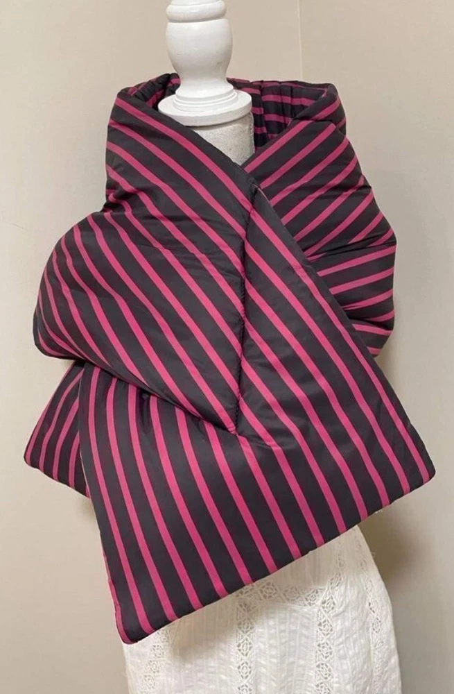HomeNew ANTHROPOLOGIE Striped Puffer Scarf Navy Blue Purple New