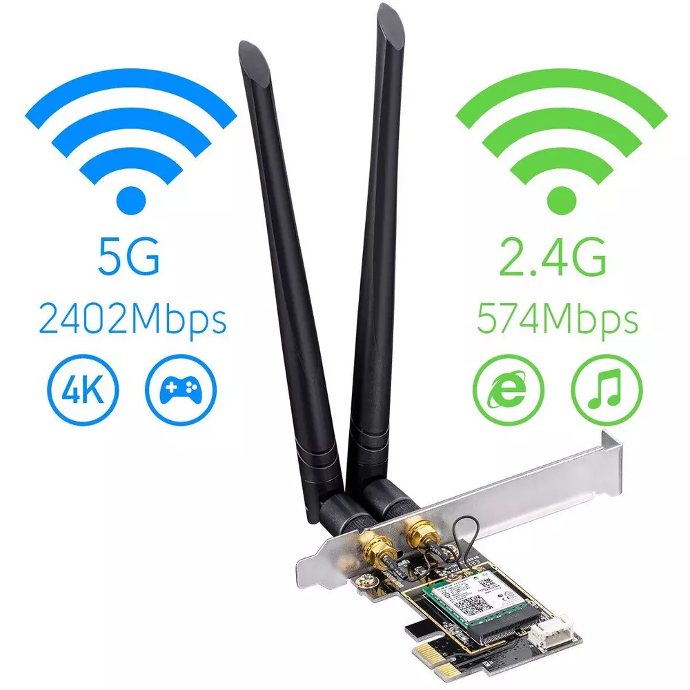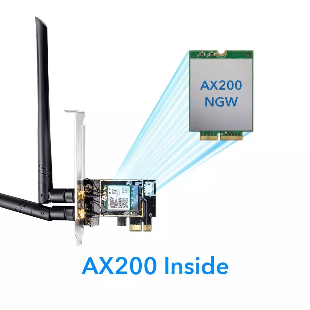 Specifications: - Intel Wi-Fi 6 chipset brings faster and clearer Wi-Fi to fully unlock the potential of your Wi-Fi 6 router. - Up to 2402 Mbps on 5 GHz + 574 Mbps on 2.4 GHz Ultra Fast Wi-Fi 6 Speed - The latest Bluetooth 5.0 technology achieves 2× Faster Speed and 4× Broader Coverage than Bluetooth 4.2. - 1024-QAM and 160 MHz bandwidth deliver powerful, continuous Wi-Fi signal, achieving speeds 3× faster than standard AC Wi-Fi. - OFDMA technology reduces lag by up to 75%, ensures ultra-responsive real-time gaming and smoother experience. - The latest security enhancements WPA3 provides enhanced protection in personal password safety - 75% lower latency ensures ultra-responsive real-time gaming and smoother experience - Full compatibility for 802.11ax/ac/a/b/g/n routers. - Full compatibility for Bluetooth 5.0/4.2/4.0 devices. Wireless Standards: - IEEE802.11ax/ac/n/a 5 GHz - IEEE802.11ax/n/g/b 2.4 GHz - Bluetooth5.0/4.2/4.0 System Requirements: - Windows10 (64bit) Package Contents: - One WE3000 with standard profile - Two 5 dBi High Gain Antennas - One Low-Profile Bracket - One Bluetooth Header Cable - One Quick Installation Guide - One Resource CD Environment: - OperatingTemperature: 0℃~40℃ (32℉~104℉) - StorageTemperature: -40℃~70℃ (-40℉~158℉) - OperatingHumidity: 10%~90% non-condensing - StorageHumidity: 5%~90% non-condensing AX200 WiFi 6 module Inside. Combined with AX200 WiFi 6 card, this WiFi 6 PCIe card brings faster and clearer Wi-Fi to fully unlock the potential of your Wi-Fi 6 router. 2.4GHz provides 574Mbps maximum speed and extremely long range, 5GHz reaches 2402Mbps maximum speed, ideal for gaming and 4K streaming. Full compatibility for 802.11ax/ac/a/b/g/n routers. Bluetooth 5.2 Technology. WE3000 PCIe Bluetooth adapter is compatible with the latest Bluetooth 5.0 Technology, achieving 2× faster speed and 4× broader coverage than Bluetooth 4.2, also backward compatible with Bluetooth 4.0. Full compatibility for Bluetooth 5.0/4.2/4.0 devices. WPA3 Advanced Security. The latest security enhancements—WPA3 provides more secure and individualized encryption in personal password safety, protecting your network from wireless hacking. Faster, Smoother and Broader. 1024-QAM and a 160 MHz bandwidth deliver powerful, continuous Wi-Fi signal, achieving speeds 3× faster than standard AC Wi-Fi. OFDMA technology reduces lag by up to 75%, ensures ultra-responsive real-time gaming and smoother experience. All the accessory contains in the package: One WE3000 with standard profile , Two 5 dBi High Gain Antennas, One Low-Profile Bracket, One Bluetooth Header Cable, One Quick Installation Guide. System requirement: Windows 10 (64bit)