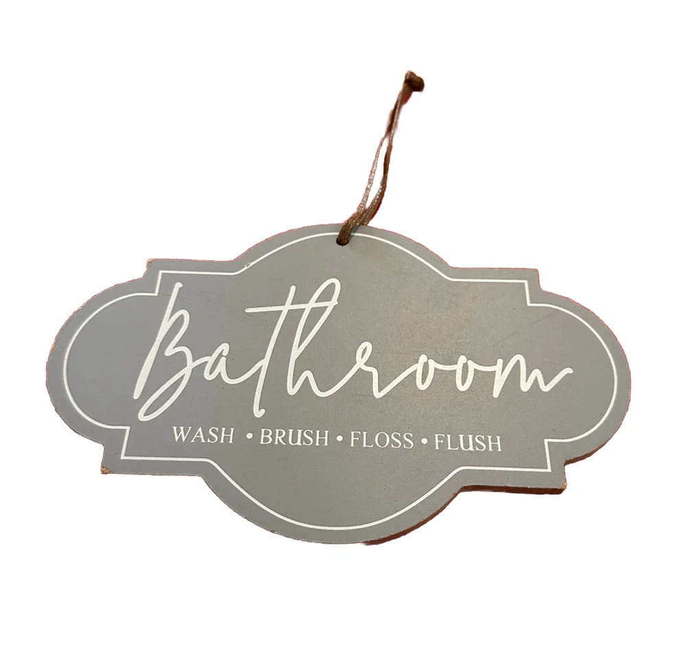 Material:WoodCare Instructions:Clean with Damp ClothShape:AsymmetricalAdditional Parts Required:NoPersonalize:NoHandmade:NoSubject:BathroomBrand:UnbrandedEngraved:NoItem Height:0.5 inDepartment:Adultsgtin13:430001865702Type:Wooden SignFeatures:Decorative, Hanging, Ready To Hang, Leather hangerFinish:MatteSize:5x8UPC:430001865702Country/Region of Manufacture:ChinaRoom:BathroomColor:Gray/WhitePattern:BorderedMounting:HangingVintage:NoStyle:ContemporaryTheme:BathroomItem Width:8 in