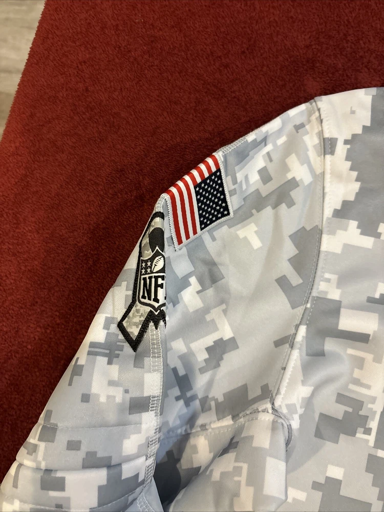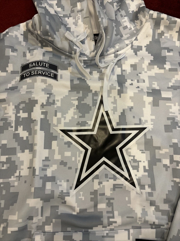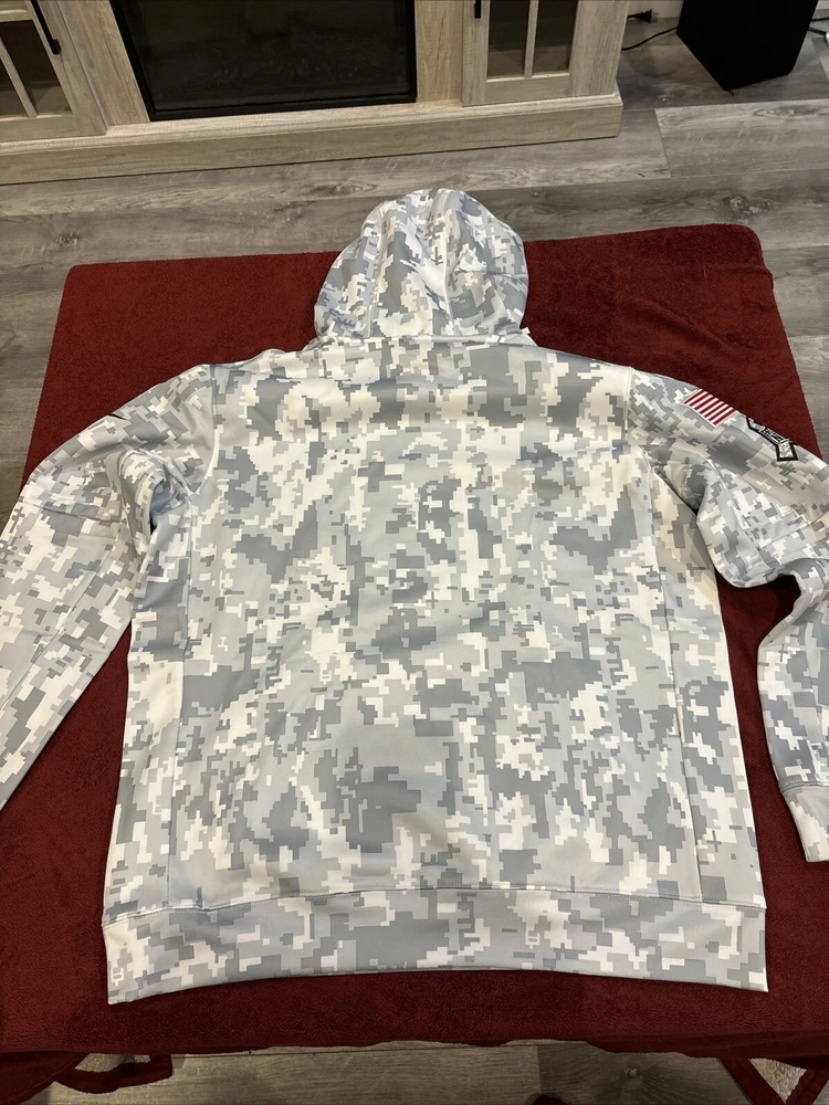 Show your support for the Arizona Cardinals with this Arctic Camo 2024 Men's Salute to Service Fleece Pullover Hoodie. Made by Nike, this hoodie is perfect for any NFL fan. The gray color and camo print make it a stylish addition to any wardrobe. With a capacity of less than 8 oz, this hoodie is perfect for wearing to the game or out and about. The size is a men's L and it features the Arizona Cardinals team logo. Whether you're a collector of fan apparel or just looking for a cozy hoodie, this Arctic Camo hoodie is a great choice.