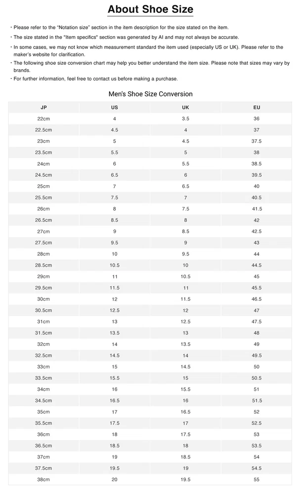 • Before purchasing, please read this page in conjunction with the notes at the bottom of the page, and by placing an order and making payment, you agree to be bound by the product conditions and notes. • International shipping will be facilitated through our central shipping center in Japan. Please allow approximately 10 business days for us to handle the item, from dispatching it from our local store to preparing it for international shipping in our central shipping center. • Tracking number will be provided only after the item reaches our central shipping center in Japan. • Item details and descriptions have been translated by AI, so occasional mistakes may occur. If you encounter any issues, please don't hesitate to reach out to us. PRODUCT INFORMATION Color Clear Brand New Balance Style Sneaker Department Men Type Athletic Product Line Others Character Others Vintage No Customized No Theme Others Model New Balance 99 Country/Region of Manufacture Unknown US Shoe Size Multisize UK Shoe Size Multisize EU Shoe Size Multisize Others ・Brand: NEW BALANCE ・Model: 996,990, etc ・Style Code: CM996UQ2 ・SNKRDUNK appraisers with expertise with tens of thousands or more appraisal records will carefully appraise. ・After completing the authenticity test by an appraiser, we will install an authenticated badge and deliver it to the customer. products/CM996UQ2 ABOUT CONDITION Regarding Trading Cards: For sealed card packs, the distribution of rare cards cannot be guaranteed. A Gem Mint. (similar to PSA10) B Mint, minor scratches, damages or bents. (similar to PSA9-9.5) C Near Mint, slight scratches, damages or bents. (similar to PSA8) D Excellent or below, obvious scratches, damages or bents. (similar to PSA7 or below) About Us Sneaker Dunk (SNKRDUNK) is Japan's No. 1 sneaker and trading card flea market app, with over 6 million monthly users. Committed to authenticity, every item in each transaction undergoes thorough verification to prevent the distribution of counterfeit products, ensuring users can shop and trade with peace of mind. All items in SNKRDUNK are carefully inspected by experienced appraisal experts. Only genuine items will be given a certified label before being shipped to buyers. About Payment • Only eBay managed payments are accepted. • We do not do transactions outside of eBay. Shipping & Taxes • All items will be shipped via Japan Post with tracking service (EMS or ePacket). • All orders will be shipped from Japan to the registered address on the buyer's eBay account. • Shipments may be delayed due to bad weather, public holidays, customs office delays, and other conditions beyond our control. • All customs duties, import taxes or related fees occurred during shipping are the responsibilities of the buyer. If you have any concerns, please inquire directly with your local customs office before making a purchase. Return & Cancellation Policy • All listed items are also available at our retail store and multiple online platforms in Japan. In the event that an item is out of stock or sold, we will issue a cancellation along with a full refund. • If you wish to return an item for a refund, please contact us directly before initiating a return or opening a case. • For damaged items or discrepancies with the item description, please reach out to us directly within 10 days of receiving the item, providing pictures of the damaged area or issues. • Unless the item is damaged or does not match its description, buyers will be responsible for the return shipping fee. > All returns must be shipped to our address in Japan with a tracking number. > Refunds will be processed once the returned item has arrived safely. • Buyers who violate eBay policies or misuse eBay's Money Back Guarantee will be reported and blocked from future purchases. click here to see our store