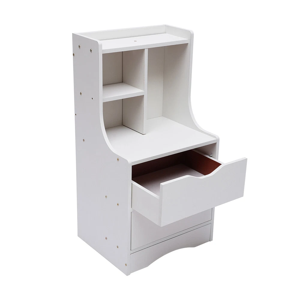 Specification Material: Medium Density Fiberboard Color: Wood Shape: Rectangle Style: Minimalist Scandinavian Surface Treatment: Veneered Surface Assembly Required: Yes Package Size: 80*40*10cm/31.49*15.74*3.39in Product Size: 37*30*70cm/14.57*11.81*27.56in Gross Weight: 8.7kg/19lbs Net Weight: 8kg/17.6lbs Package Included 1* Nightstand All Accessories for Installation Application This item can be used in bedrooms, living rooms, study rooms, dormitories, beauty stores, etc. for neatly storing cosmetics, books, decorations, jewelry, and other desktop accessories. Notes Please allow the slight color difference caused by the shooting light and 1-3cm error due to manual measurement. Please make sure you do not mind before you order. Bedroom Side Storage Set of Nightstand Beside End Table +2 Large Drawers NEW Wood End Table with Storage Shelf 2 Drawers Nightstand Side Table Cabinet Bedside Furniture Description Do you still struggle with a messy bedside? Do you always have items missing from your bedside? Don't worry, our nightstand will solve these worries for you. Its large storage capacity and partitioned design will keep your room tidy and your belongings organized. It will be the ideal choice for you. Specification Material: Medium Density Fiberboard Color: White Shape: Rectangle Style: Minimalist Scandinavian Surface Treatment: Veneered Surface Assembly Required: Yes Package Size: 80*40*10cm/31.49*15.74*3.39in Product Size: 37*30*70cm/14.57*11.81*27.56in Gross Weight: 8.7kg/19lbs Net Weight: 8kg/17.6lbs Package Included 1* Nightstand All Accessories for Installation Details Arched Bottom: The arched bottom is not only aesthetically pleasing but also makes the nightstand more stable . It also ensures that the drawers are at the right height to the floor for good moisture protection. Pre-Drilled Holes: Our nightstand has pre-drilled holes , so you don't need to drill additional holes on the boards. You only need to tighten the screws to complete the installation, which is very convenient. Wide Desktop: Its wide desktop (14.57*11.81) allows you to place more items, making it convenient for you to use. Smooth Edge: The corners and edges of this nightstand are sealed for smooth lines and rounded corners to prevent scratching. Full Pull-out Drawer : The full pull-out design of this nightstand, can display all the things in the drawer when pull out and make it more convenient for you to get them. C-shaped Baffle: The C-shaped baffle encloses the sides and back of the nightstand to prevent items from falling, and is also aesthetically pleasing. Recess Handle: The top of each drawer has a recessed handle that allows you to open or close it easily. Application This item can be used in bedrooms, living rooms, study rooms, dormitories , beauty stores, etc. for neatly storing cosmetics, books, decorations , jewelry, and other desktop accessories. Key Features Versatile Style: The combination of the natural, fresh wood color and the minimalist Scandinavian style can be well integrated into a variety of décor styles to create a stylish bedroom. Cozy Companion: It provides a place for your bedtime reading and sleep-aid scenting, and stores up your bedtime clutter. Choose a book from your nightstand at night, put a glass of milk on it, and enjoy a cozy bedtime. Small Footprint: It has a small footprint, making the most of vertical space. Only a small corner next to the bed can easily accommodate it. Large Storage Capacity: Every inch of space in this nightstand is well utilized. It has two drawers as well as storage shelves , providing you with plenty of storage space to meet your daily needs. Easy to Clean: It has a veneered surface with a smooth finish that is easy to clean. You can easily wipe off the dust with a damp towel. Sturdy and Durable : It is made of medium density fiberboard, which is sturdy, durable, and resistant to deformation to guarantee a long service life. Easy to Install: This nightstand is simple in construction and comes with the necessary accessories, we even provide you with a screwdriver so you can install it with ease. Keep Room Tidy: The fine partitioned design allows for organized and tidy storage . The bottom drawer can be used for personal items. The countertop and shelves can be used to store frequently used items and the open design allows for easy access and display. Excellent After-Sales Service: We aim to provide quality products and services. If you have any problems, please feel free to contact us. We will reply and solve the problem for you as soon as possible. Notes Please allow the slight color difference caused by the shooting light and 1-3cm error due to manual measurement. Please make sure you do not mind before you order. Payment Delivery details Terms of sales About us Contact us Payment We accept ebay payment 。 Fees such as import duties, taxes are not included in the item price or shipping costs. These charges are the buyer's responsibility. Delivery details Shipping: 2-9 working days to: USA Terms of sales We maintain high standards of excellence and strive for hundred percent customer satisfaction. Feedback is very important to us. We hope that you contact us immediately before you give neutral or negative feedback, so that we can address your concerns. It is impossible to address issues if we do not know about them! About us Your satis faction is our ultimate goal. We work hard to earn your trust and future business. Our certified technicians have tested each item before shipping. The unit comes with 1 year limited warranty on all manufacturing defects. a) If you receive a defective item, you may return it or ask for a discount. Please contact us within 14 days after you receive the package. b) What you returned must be intact and in its original packaging as re? u. Customer is responsible for shipping costs of the returned item. c) We will cover the cost of shipping back t with the shipping rate indicated in the registration page. We will send you a
