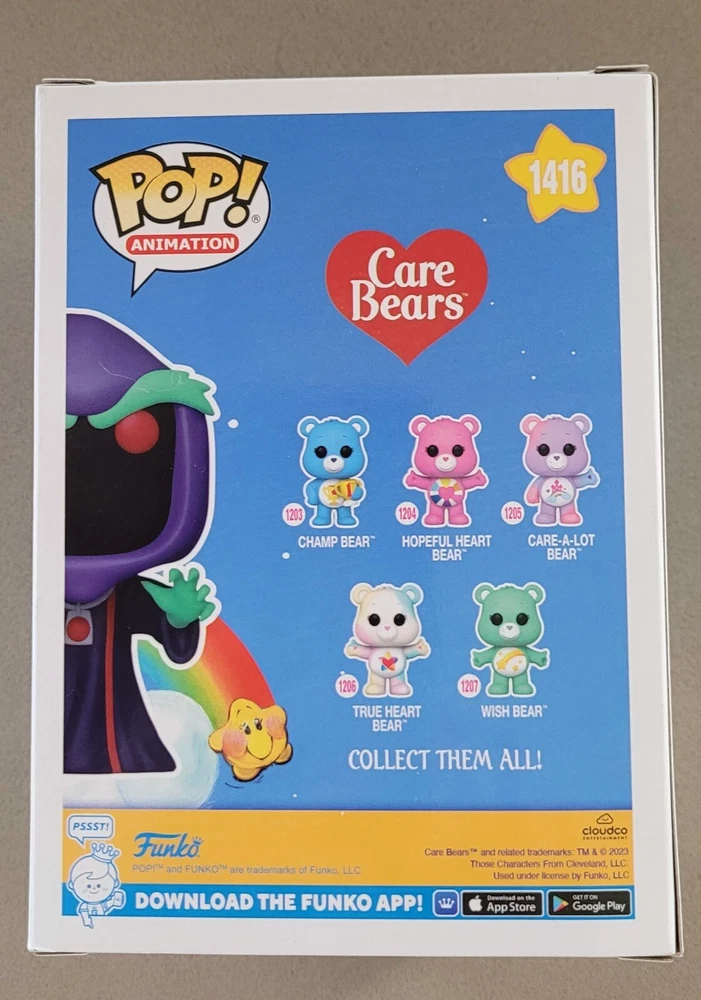 Step into the world of nostalgia with the Care Bears No Heart Limited Edition Funko Pop Vinyl #1416, a must-have for collectors and fans of the iconic franchise. This unique figure captures the essence of the beloved '80s character with its vivid colors and meticulous attention to detail, all crafted from durable vinyl material. As a prized piece from Funko's exclusive Pop! product line, this collectable stands out with its distinctive style and collectible appeal. Whether you're looking to reminisce about your childhood or add a rare gem to your collection, this Care Bears vinyl figure is an ideal choice, celebrating the enduring legacy of these cuddly icons.