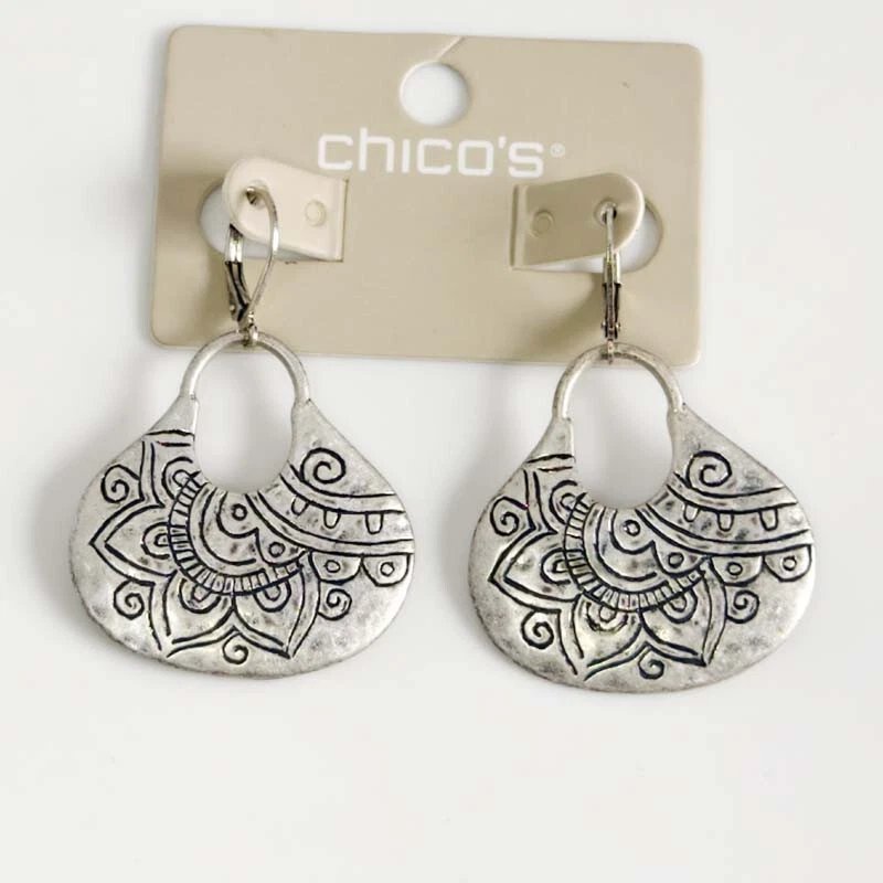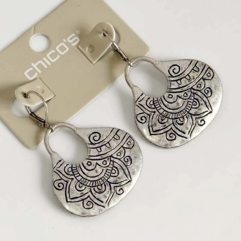 View more great items New 48mm Chicos Antique Silver Tone Floral Flakes Drop Earrings Gift Vintage Women Party Holiday Jewelry Description: The listing is only for 1pairs new chicos antique silver tone floral flakes drop earrings(not including the coin for taking picture). Size: about 4.8cmx3.3cm Condition: New with tag Color: antique Silver+black Payment: We only accept paypal. It is fast and safe, we strongly recommend the payment method to you. We reserve the right to file Non-Paying Bidder if payment is not received 7 days after the auction ended. Shipping: Orders are usually shipped out within 2 business days (mostly within 24hrs).The EAT is 10-20 business days. We don't ship the PO, FPO, APO address, pls supply a physical address with your phone# or mobile phone#. Country Expecting Arrival Time USA / UK / Australia 10-20 working days Canada 10-21 working days Brazil / South America may take up to 6-8 weeks due to strict Custom Inspection Italy / France / Spain / Germany/ Eastern Europe may take up to 6-8 weeks due to strict Custom Inspection Pls contact us, if you have an urgent shipment. We don't combine the shipment. We only charge shiping fee, don't charge any handling fee. Return: We are in China. Ebay will show the location clearly when you buy. If you need to return any items, it need to return to our China address. We ship the items via the speedPak according to ebay's request. The speedPak will offer its tracking# when we ship the items. But the tracking will be change to USPS tracking# when the items arrive in USA. Pls note it. Brand new If merchandise is defective we will replace a new one for you, no refunds or credits. Defective situation must be reported to seller within 30 days upon receipt. Shipping insurance are not refundable in any case Buyer bears all shipping charges. Warranty: Brand new with no scratches. Perfect gift Professional packing, Good protection Double quality check for each item Ship by air mail without the tracking number Serious full time seller, serve you 24 hour from Monday to Saturday No Import Tax or Sales Tax, Unbelievable Low Price Reply your questions in 24 hours ATTENTION: Please read the item descriptions and shipping cost before placing a bid. Track Page Views With Auctiva's FREE Counter