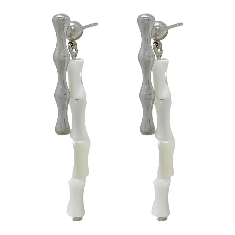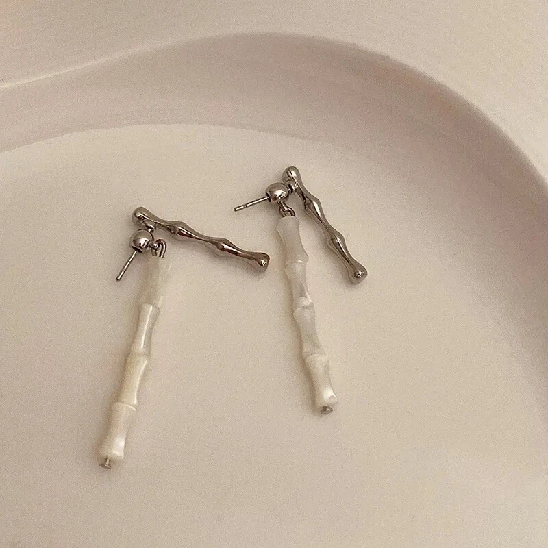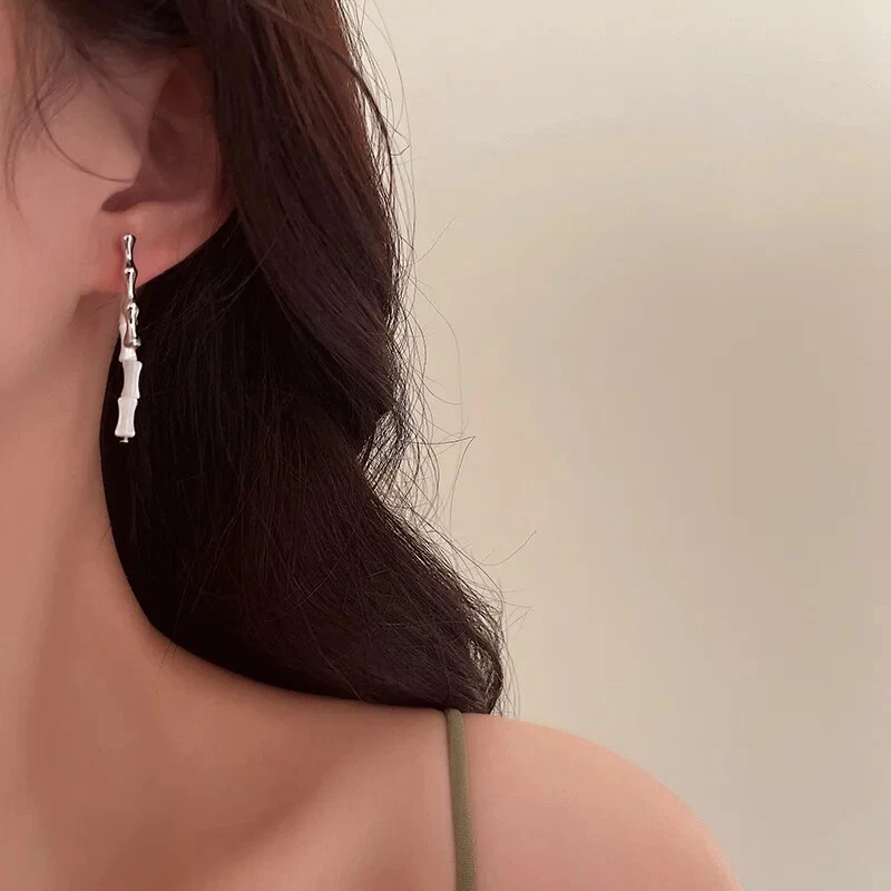 New Chinese White Jade Bamboo Knot A Pair Of Earrings Fashion Design Sense Of Wo