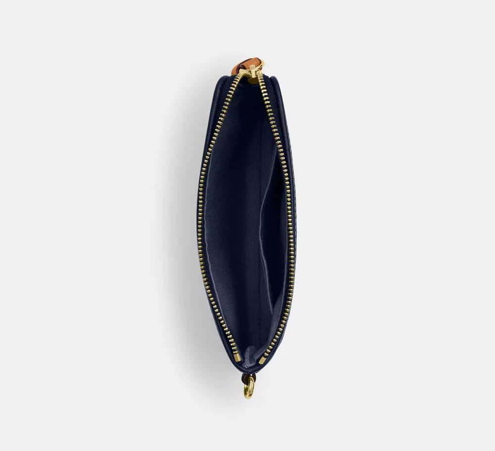 denim/Gold/Den Gold/Natural Style Number CZ452 Measurements Length: 6.25" Height: 4.0" Width: 0.5" Materials Signature denim and vachetta leather Fabric lining Features Two credit card slots Zip-top closure Wrist strap attached Additional Details Exclusive of trim, this denim style is crafted of cotton sourced from farms that use regenerative agricultural practices—those that help to maintain and rejuvenate land, increase biological diversity and soil health and could lead to increased carbon absorption