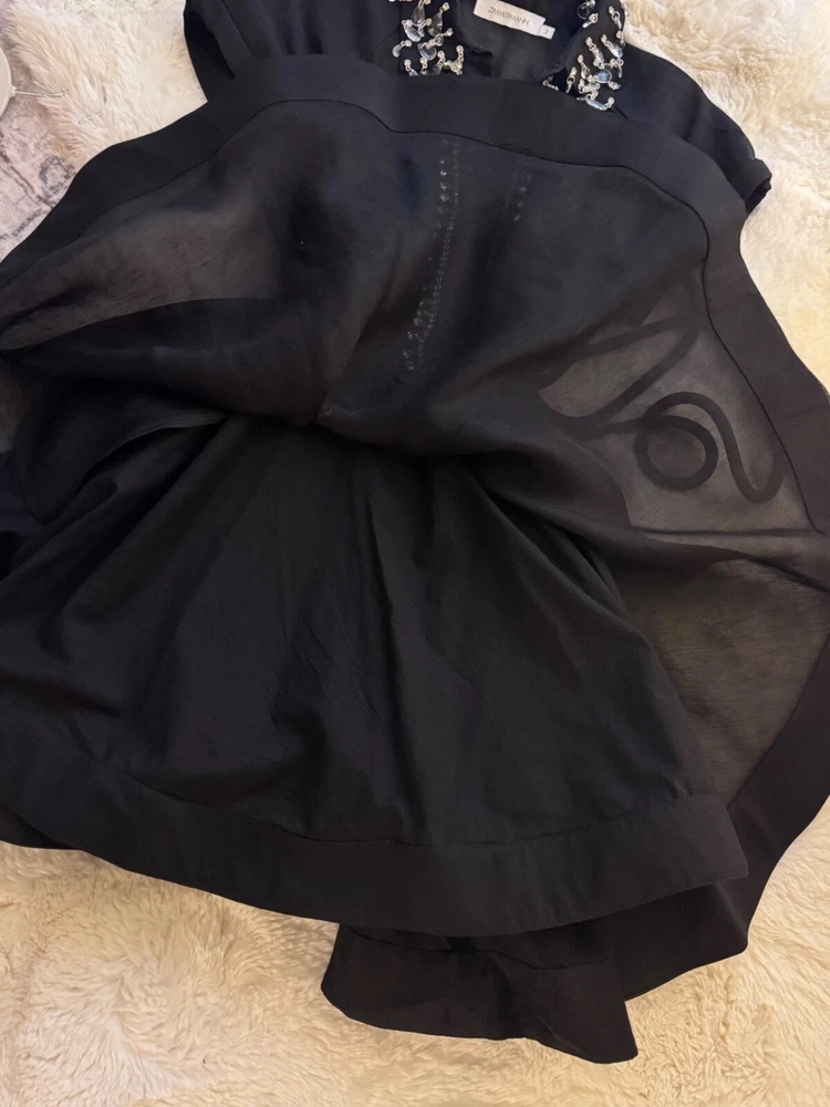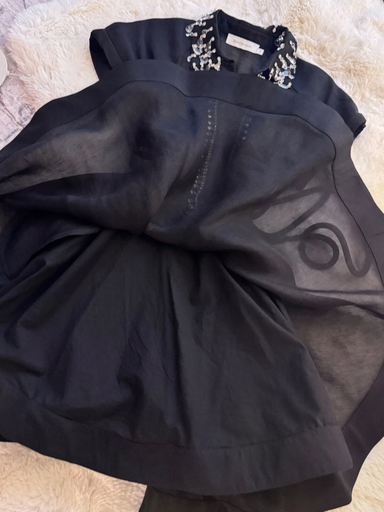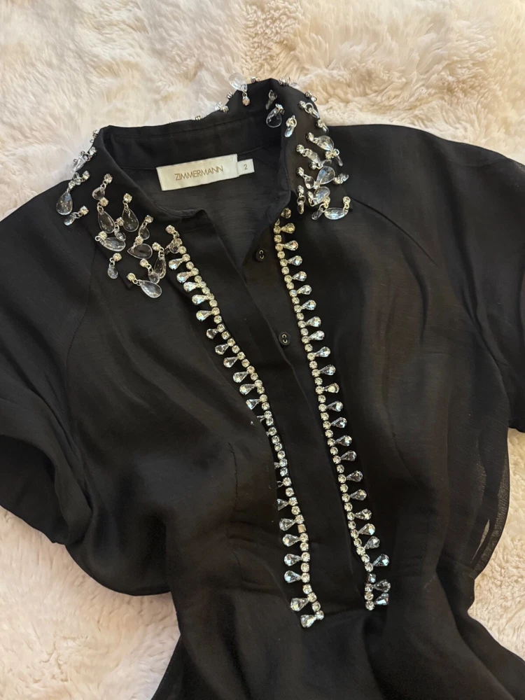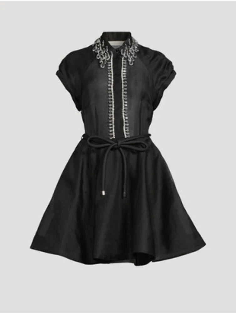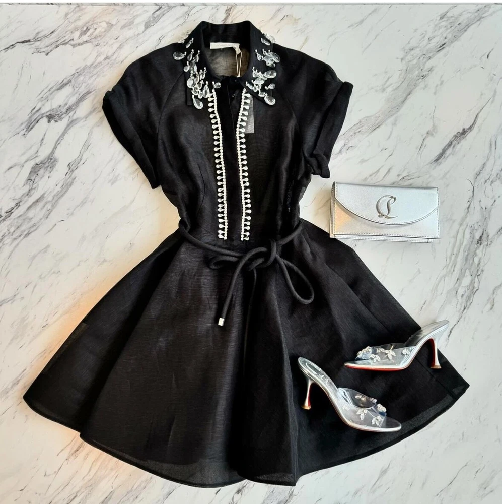 Experience the perfect blend of style and comfort with this elegant ZIMMERMANN dress. Designed for the modern woman, the dress features a timeless solid black color, complemented by short sleeves and a playful mini length, making it an ideal choice for both daytime and evening events. Crafted to fit a size L, this dress embraces a regular size type, ensuring a flattering fit for a variety of body shapes. The simple yet chic style of this garment underscores the sophistication that ZIMMERMANN is renowned for, making it a versatile addition to any wardrobe.