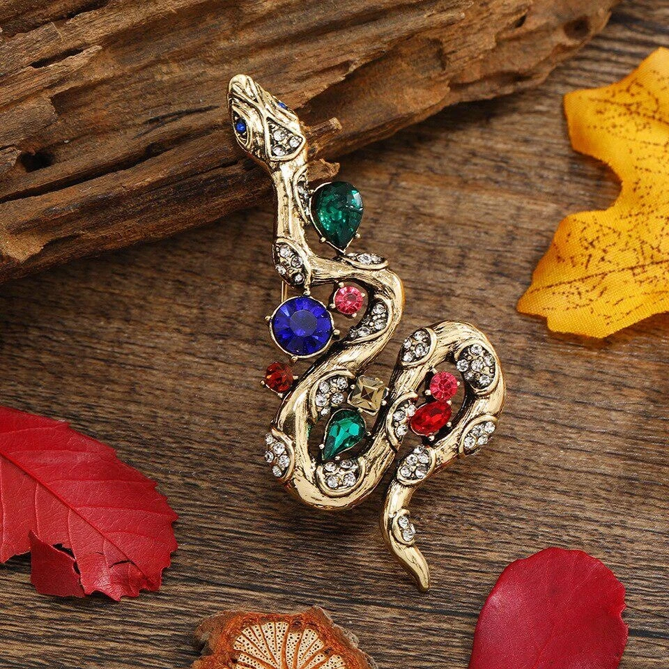 New Creative Classic Vintage Snake Enamel Crystal Badges Women Men Accessories
