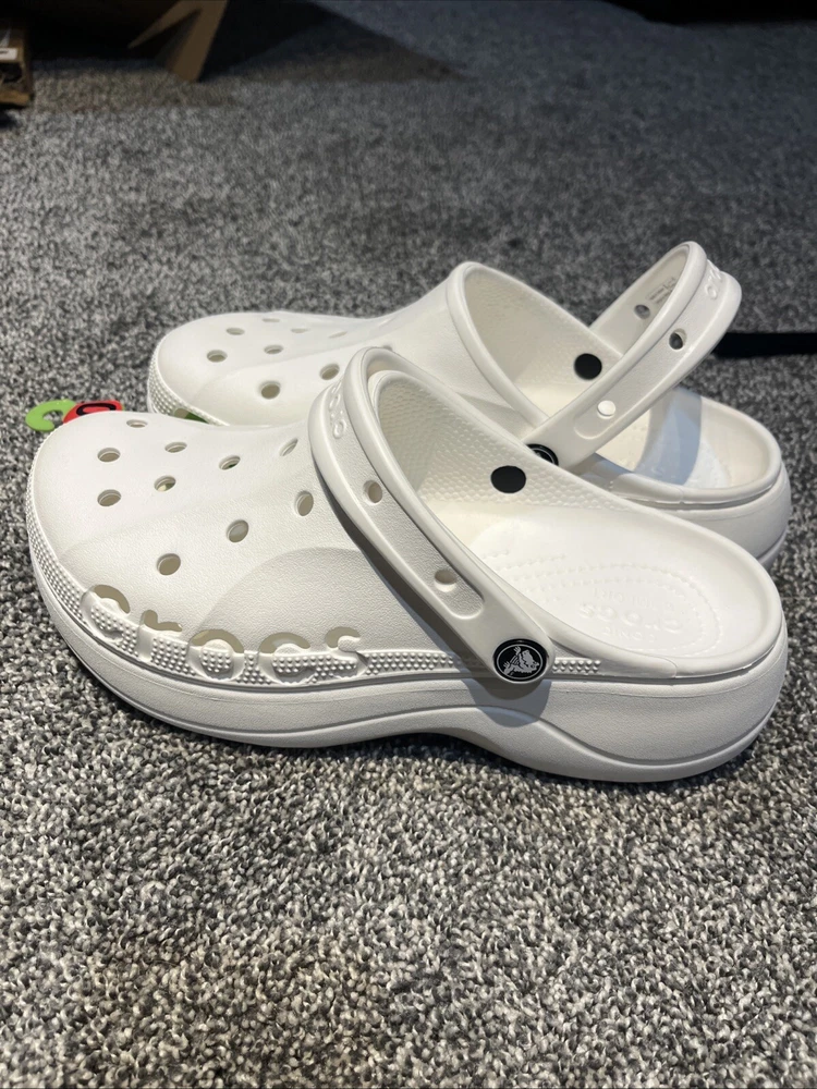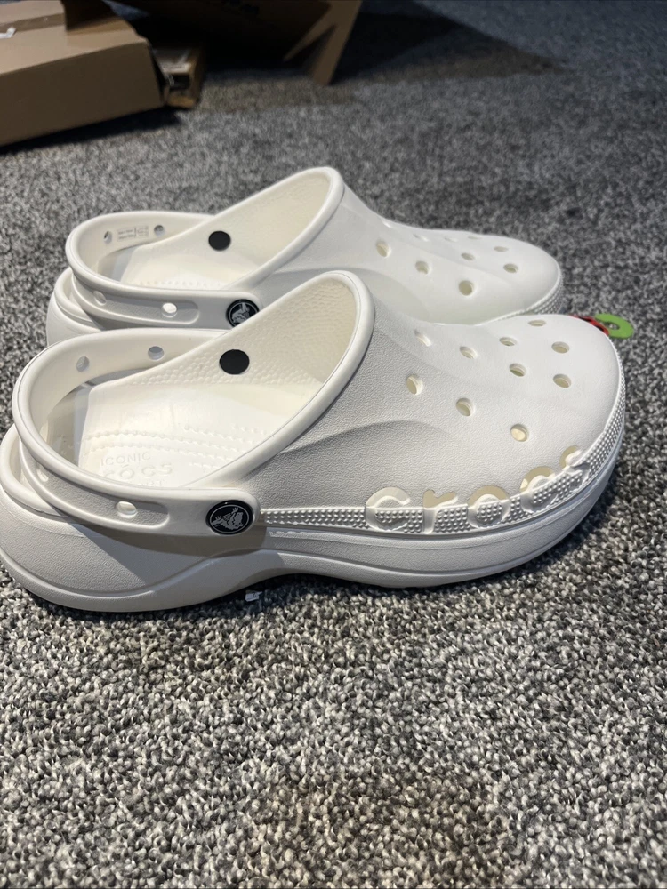 New Crocs Baya Womens Size 10 Slip On Platform Shoes Platform Clogs White. Shipped with USPS Ground Advantage.