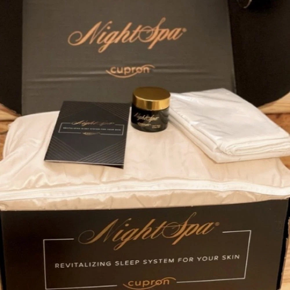 Set includes: Cupron® memory foam pillow, Cupron® pillowcase, Rejuvenating Cupron® Night Cream, pillow protector • Dimensions: gift box (14.625" x 9.625" x 6.4375"), night cream (2"), pillow (16" x 25" x 5"), pillowcase (20" x 30") • Revitalizing sleep system helps even the appearance of skin tone and brighten dull skin, helps reduce blemishes and wrinkles and can help increase the quality of sleep • The pillows memory foam promotes proper spinal alignment, giving you the right balance of comfort and support • 5-year limited warranty (applicable to pillow, protector and pillowcase only) O • Safe and effective for all skin types • Safe sleep with CertiPUR-US® ce