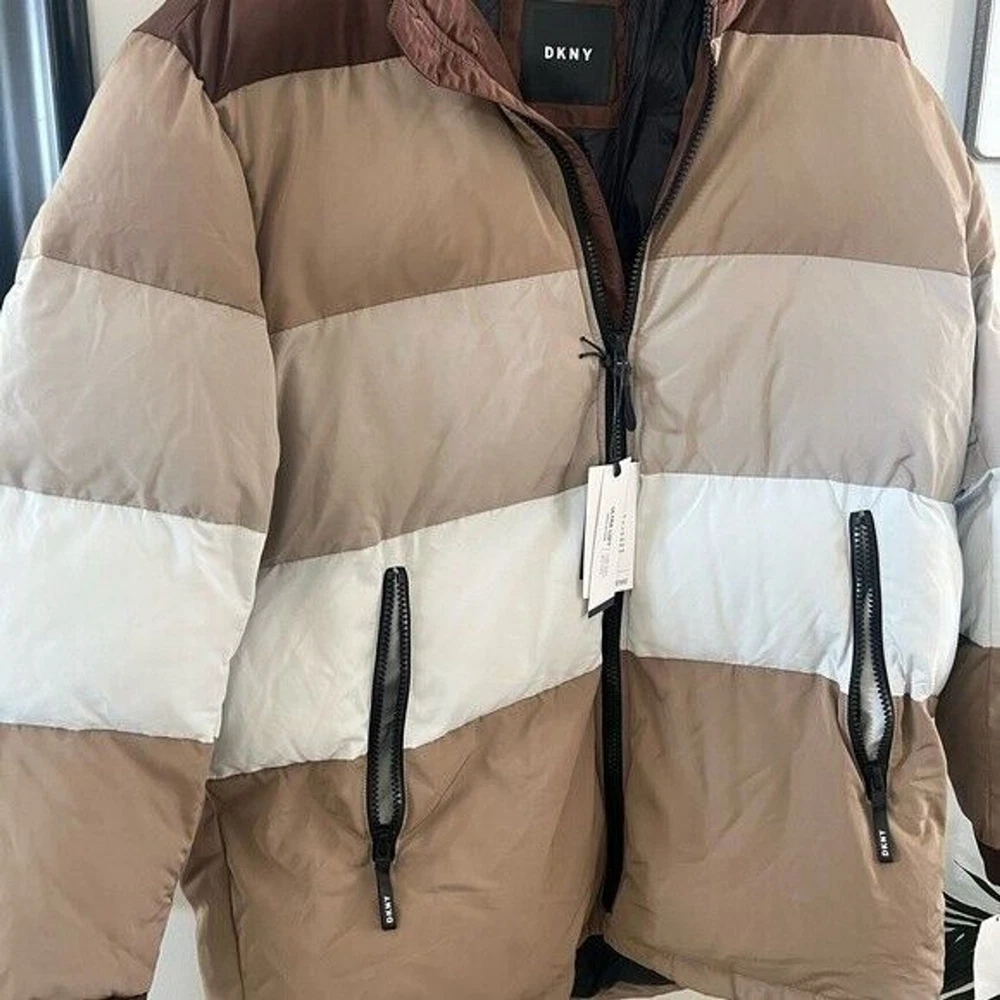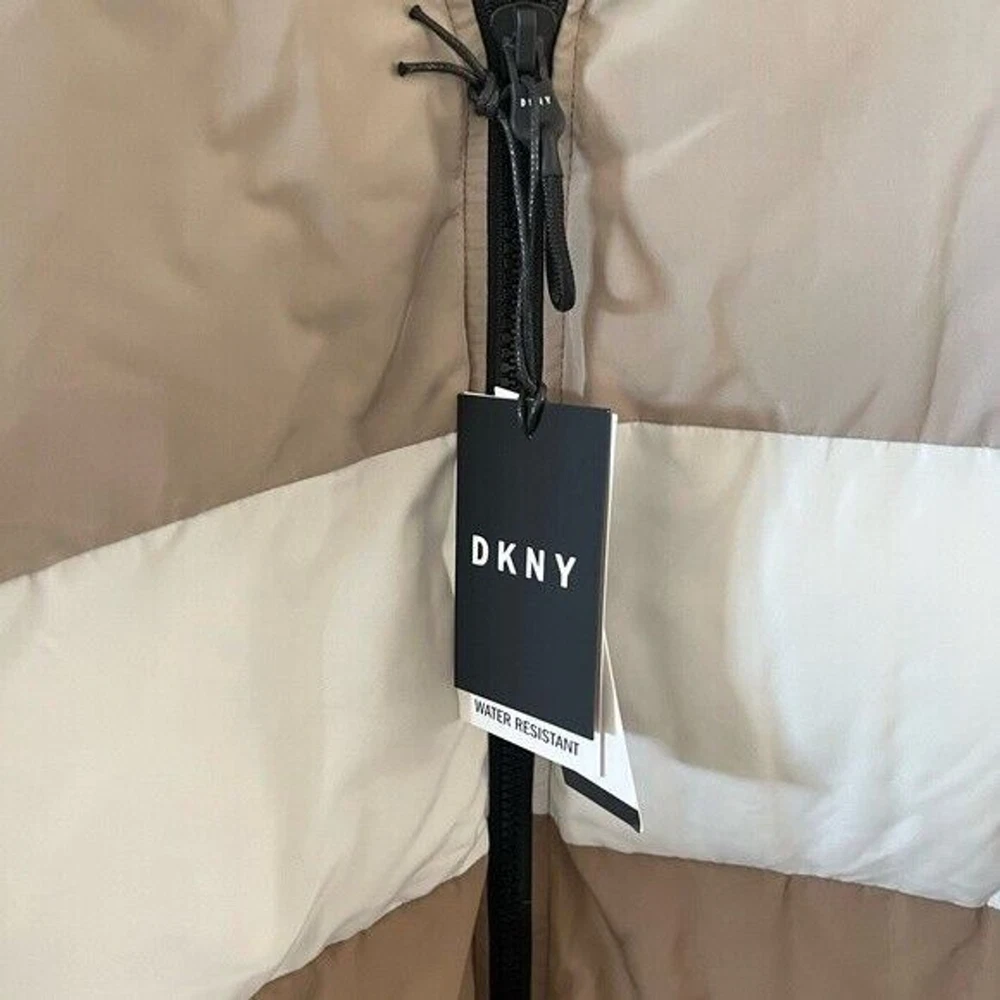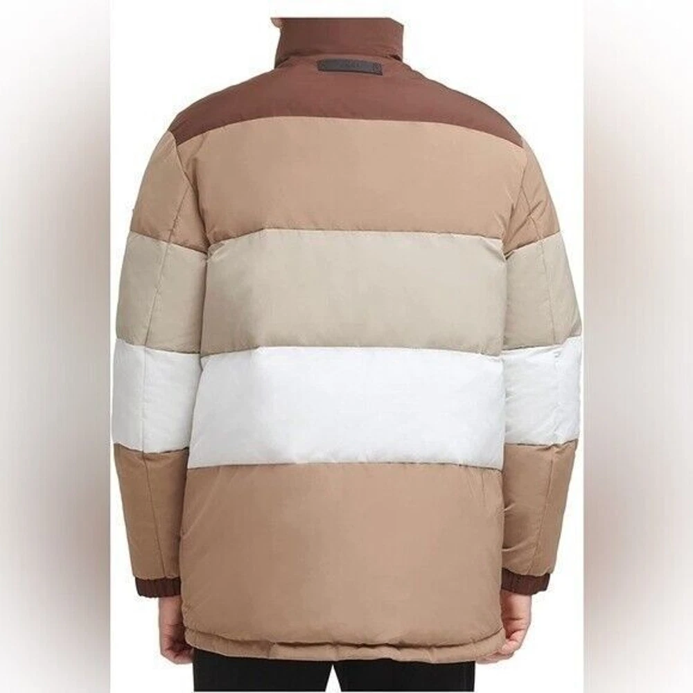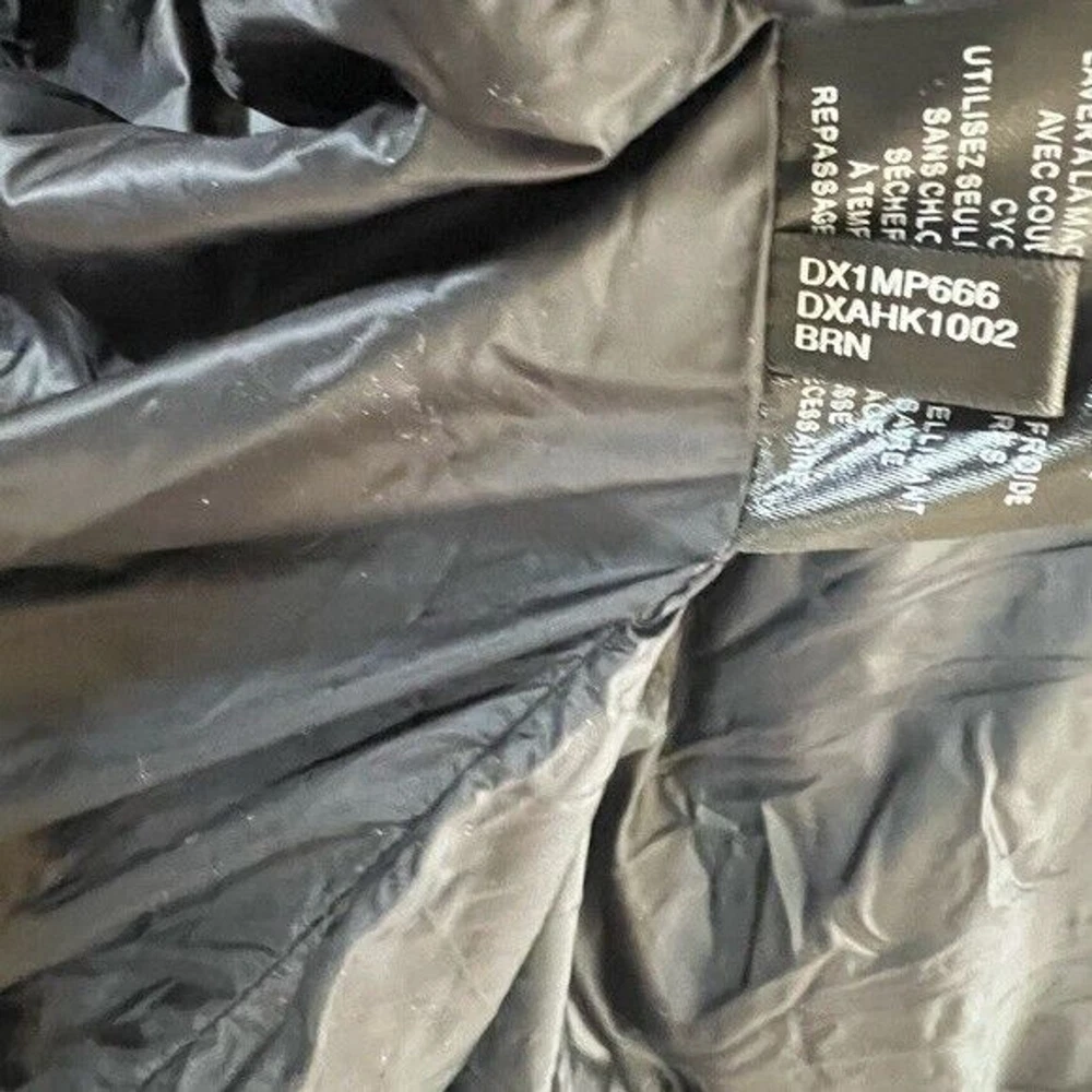 Step into both style and comfort for cold evening on the town with the bold, runway-ready quilted body and heavyweight design of this fresh take on the classic walking coat from DKNY. Heavyweight Regular fit Zip-through collar; full-zip front closure Two welt zipper pockets DKNY logo plaque on left sleeve; colorblock style (brown colorway); mixed media (red colorway) adjustable cuffs Shell: faux memory/patent faux leather polyurethane (red colorway); polyester faux memory (brown colorway); body lining: nylon; sleeve lining: polyester; DXIMP666 Age Group adult Gender male Color brown combo