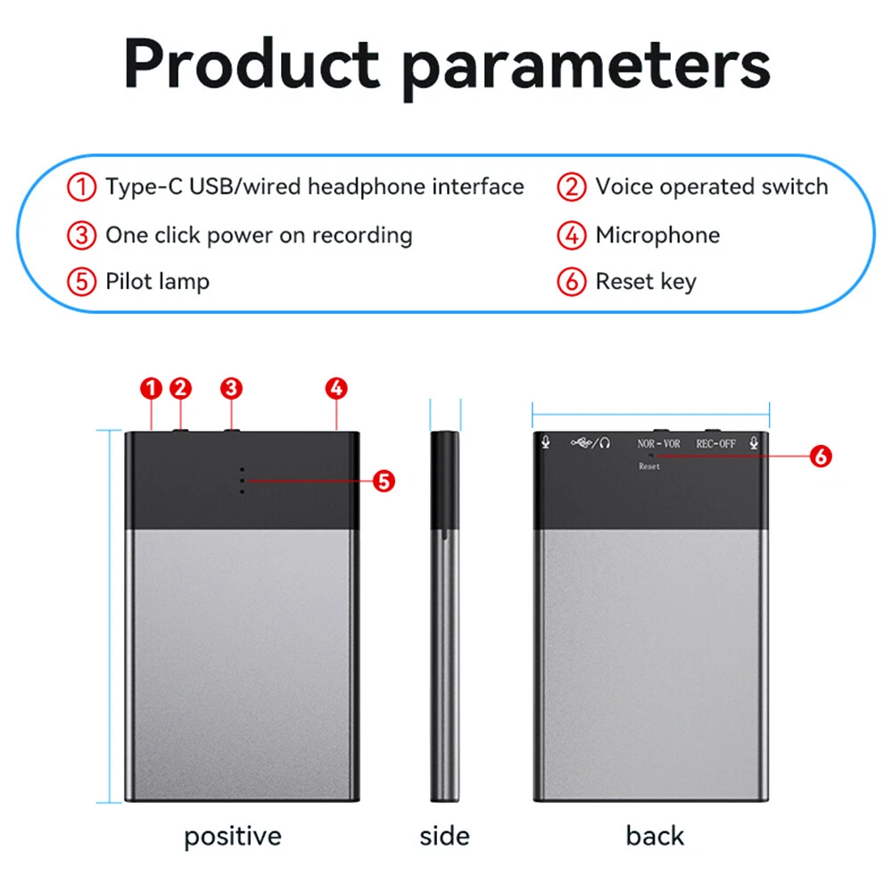 Store Categories Store Categories Other Digital Voice Recorder Dictaphone Audio MP3 Player Sound Voice Recording Device Details Features: 1. The shell is made of metal and zinc alloy materials, with strong drop resistance. 2. Professional recording pen chip, high-definition recording. 3. Timestamp, automatically name recording files by date. 4. AGC function, automatically adjusts the noise source. 5. Recorder, MP3 player, and USB flash drive. 6. Supports voice controlled recording and high-definition noise reduction. 7. Detect low battery level and automatically save recording files. 8. Play function, one click recording/saving. 9. Remote control headphones, insert headphones to listen to music. The ultra-thin size of 10.6mm makes it easy to fit into wallets and pockets. 11. Long battery life, continuous recording for 100 hours 12. Built in rechargeable 800mAh lithium battery. 13. C-type connector, convenient for uploading and downloading files. 14. Large capacity USB drive function, built-in 8G/16G/32GB large memory. 15. Wide applicability, can be used for business, conferences, interviews, etc. Specifications: Product Name: Recording Pen Recording format: WAV/MP3 Play format: WMA/WAV/MP3/FLAC/APE Sampling frequency: 48KHZ Recording Bit Size: 192KBPS Response frequency: 20-20KH Memory capacity: 8GB/16GB/32GB (optional) 8GB capacity: Store audio files for 90 hours 16GB capacity: Store audio files for 180 hours 32GB capacity: Store audio files for 360 hours Battery capacity: 800mAh Charging time: 1 hour Charging port: type-c Recording duration: 100 hours Standby time: 180 days Shell material: Zinc alloy Product size: 76 * 46 * 6mm Product color: Black gray Package List: 1 * Recording pen 1 * Earphones 1 * User Manual 1 * Type-C cable Be careful: 1.Due to manual measurement, please allow a difference of 1 centimeter error! 2. It may vary depending on the color of the light or the color tone of the monitor! Shipping Policy Payment Method Returns Policy Shipping Policy Payment Method This is the description of Payment Method. Do not dismiss your dream. To be without dream is to be without hope. To be without hope is to be without purpose. Do not run through your life so fast that you forget not only where you have been, but also where you are going. Life is not race, but a journey to be savored each step of the way. Returns Policy This is the description of Returns Policy. Do not dismiss your dream. To be without dream is to be without hope. To be without hope is to be without purpose. Do not run through your life so fast that you forget not only where you have been, but also where you are going. Life is not race, but a journey to be savored each step of the way. Copyright©2017 DataCaciques Digital Voice Recorder Dictaphone Audio MP3 Player Sound Voice Recording Device Item Description Features: 1. The shell is made of metal and zinc alloy materials, with strong drop resistance. 2. Professional recording pen chip, high-definition recording. 3. Timestamp, automatically name recording files by date. 4. AGC function, automatically adjusts the noise source. 5. Recorder, MP3 player, and USB flash drive. 6. Supports voice controlled recording and high-definition noise reduction. 7. Detect low battery level and automatically save recording files. 8. Play function, one click recording/saving. 9. Remote control headphones, insert headphones to listen to music. The ultra-thin size of 10.6mm makes it easy to fit into wallets and pockets. 11. Long battery life, continuous recording for 100 hours 12. Built in rechargeable 800mAh lithium battery. 13. C-type connector, convenient for uploading and downloading files. 14. Large capacity USB drive function, built-in 8G/16G/32GB large memory. 15. Wide applicability, can be used for business, conferences, interviews, etc. Specifications: Product Name: Recording Pen Recording format: WAV/MP3 Play format: WMA/WAV/MP3/FLAC/APE Sampling frequency: 48KHZ Recording Bit Size: 192KBPS Response frequency: 20-20KH Memory capacity: 8GB/16GB/32GB (optional) 8GB capacity: Store audio files for 90 hours 16GB capacity: Store audio files for 180 hours 32GB capacity: Store audio files for 360 hours Battery capacity: 800mAh Charging time: 1 hour Charging port: type-c Recording duration: 100 hours Standby time: 180 days Shell material: Zinc alloy Product size: 76 * 46 * 6mm Product color: Black gray Package List: 1 * Recording pen 1 * Earphones 1 * User Manual 1 * Type-C cable Be careful: 1.Due to manual measurement, please allow a difference of 1 centimeter error! 2. It may vary depending on the color of the light or the color tone of the monitor! Payment 1.We only accept payment from PayPal. 2.Please make sure your eBay address is correct before you pay. 3.All payment Should be Completed within 7 days, or an unpaid disputed will be opened as payment none receive. 4.If you do not want to pay for the order please contact us via eBay message, we will help your cancel the transaction. Shipping 1. We only ship to confirmed PayPal addresses. 2. Economy Shipping, with no tracking number. Standard Shipping, with tracking number. Express (Expedited) Shipping, with tracking number. 3. Economy shipping needs 2-5 weeks to arrive mostly. In rare case, it can take up to 6-8 weeks. It depends on your location and local postal service, as well as the weather condition along the shipping. 4. If you need a faster delivery time, you could choose Express (Expedited) Shipping. If you need a tracking number, you could choose Standard Shipping. Return 1. We offer 60 day money back or replacement guarantee. In addition, it allows customers to return new and unused products in their original factory condition for any reason within 60 days from the date of purchase. 2. Although we test each item and they are packed professionally, few item(less than 0.1%) might be damaged during the shipping. Please feel free to contact us within 4 days after you receive your package about replacement. 3. If you don't 