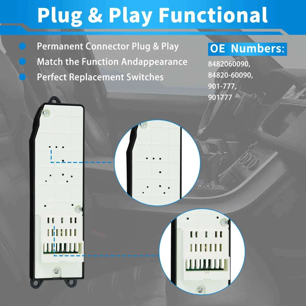 New Electric Power Window Master Control Switch For 2001-2004 Toyota Tacoma Item Features: Quantity Sold: One Piece Fitment Type: Direct Replacement Placement on Vehicle: Front Left, Drive Side Pins Quantity: 14 Color: Black Total New and High Quality Manufactured Under Strict Quality Control 100% Brand New & High Performance, 100% aftermarket Made Of High Quality and Durable ABS Materials Stable Characteristics and High Reliability Easy To Install, Perfectly Fit In Your Vehicle OE Part Number: 84820-60090, 8482060090, 84820 60090 84820-AA011, 84820AA011, 84820 AA011 SM1774, 1S3254, DWS1404, 901-777 (Note:w/ Auto-Down) Package Including: 1x Window Switch Vehicle Compatibility: For 1998 Toyota 4Runner Front Driver Side For 1997-2001 Toyota Camry LE (Japan Built Models (1st VIN Digit J)) Front Driver Side For 2000-2004 Toyota Echo 4 Door Sedan Front Driver Side For 1998-1999 Toyota Avalon For 1997-2001 Toyota Camry CE (US Built Models) For 1997-2001 Toyota Camry LE (US Built Models) For 1998-2002 Toyota Corolla Notice: 1. Prior to buying, Please check your vehicles compatibility on the chart above . If your car does not appear on the compatibility chart, it is not compatible with your vehicle. 2. Prior to buying, Please check your old number and pictures.If your old product pictures is not same with the item picture, it doesn't fit your vehicle. How to Replace a Power Window Switch: 1. Open the vehicle's hood to disconnect your battery. 2. Insert screwdriver to the gap. 3. Remove the panel on the inside of the door. 4. Remove the switch assembly, insert to new one. 5. Tighten the battery clamp. Ensure the connection is good. 6. Testing the power window switch.