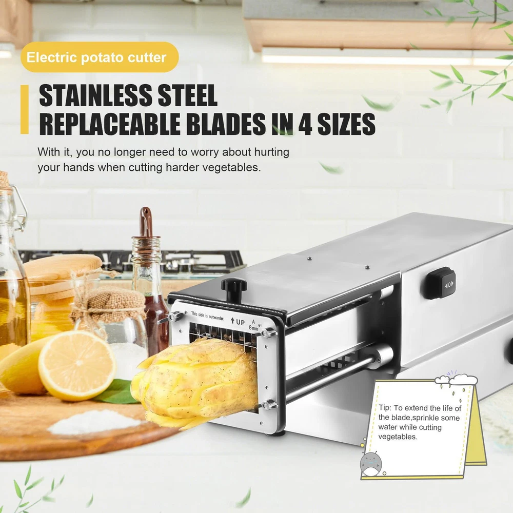 Store category Sign Up Now ! You may also like Product Description Bullet Points: Large Storage Room: With a large capacity, our electric French fry cutter is suitable for both commercial and home use. It helps you quickly cut potatoes into French fry shapes, saving time and effort. Say goodbye to tedious cutting and slicing and hello to perfectly shaped fries. Last for a Long Time: Manufactured with thick stainless steel, this Electric French Fry Cutter boasts good durability against deformation and rust. Its stainless steel shell ensures long-lasting use, making it a good and robust addition to your kitchen. Widely Applicable: Using 4 stainless steel interchangeable cutters, this Electric French Fry Cutter creates versatile 1/2", 1/3", 3/8", or wedge-shaped strips/cubes. Each cutter is replaceable and delivers extended service life, perfect for slicing potatoes and more. Easy to Use: Have crispy fries in no time with our Electric French Fry Cutter. Simply open the lid, load ingredients and press start. Easily push out fries with 1 button. Safe Usage: The electric French Fry Cutter is equipped with a secure lid made of rust-proof stainless steel. The machine is designed not to operate unless the lid is properly in place, ensuring maximum safety. Effortlessly cut a large capacity of thick fries with the Electric French Fry Cutter. The included lid ensures safety while easily pushing out fries to meet your different needs. Specification: Product size: about 6.3x8.1x19 inches/16x20.57x48.26cm Material: Stainless steel Recommended use: Vegetables Product care instructions: Hand wash only Cutter material: Stainless steel Cutter shape: Rectangular Using mode: Automatic Color: black, silver Packing List: 1* Electric Potato Machine 4* Cutters Payment Delivery details Terms of sales About us Feedback & DSRs Payment Before you palce an order, please kindly make sure that you have a paypal account. We accept PAYPAL payment only. Payment should be completed within 2 days after auction closed, or unpaid dispute will be filed for an closing auction. An unpaid case will be filled after 4 days. Delivery details We ship to your eBay address. Each package will be shipped to US by UPS Regular Parcel with tracking number. Please check your shipping address carefully before checkout, it can't be changed if order completed. All items will be shipped within 1-2 business day upon receipt of payment.Orders placed on weekend will be shipped within 3 days. If you do not receive your item in 7-10 business days.please contact us immediately for further assistance. We will be responsible for any damages or losses incurred in the shipping process. About us We maintain high standards of excellence FIVE STAR and strive for 100% customer satisfaction! Positive Feedback is very important to us. We hope that you contact us immediately Before you give us neutral or negative feedback, so that we can satisfactorily address your concerns. We promise to offer the lowest price and high quality produce. Our working time: From Monday to Friday(9:30 am to 18:00pm), we don't working on holidays ,hope you can understand and know that , thank you. Please always talk to us via ebay Message. We appreciate your business and look forward to growing our e-Bay sales with satisfied customers. Feedback Contact us If you have any questions, please feel free to contact with us by ebay Message during our business hours ( 9:30a.m. to 5:30 p.m.), or email us through eBay, we will try our best to help you to resolve it. For any presale or after-sale questions,please do feel free to email us! Due to the time difference, each email will be replied within 1 working day,and weekend will be delayed a bit. Feedback