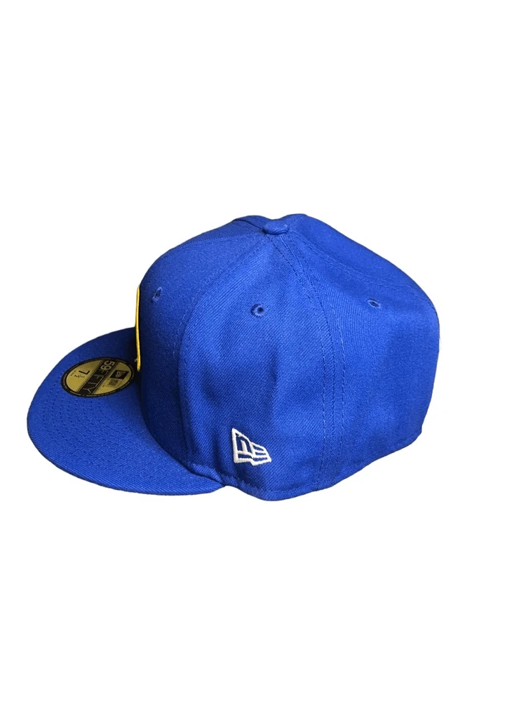 New Era Golden State Warriors Pop Citrus 59FIFTY Hat cap Size 8 - New with tags - Blue/ Gold/ Green - Fitted 8 - Embroidered 6x NBA Finals Champs patch and new era on sides, NBA logo on back, and Golden State Warriors patch on front - 6 Panel construction with embroidered eyelets - Fitted hat - High crown; flat bill - Green brim of hat - Durable polyester blend fabric