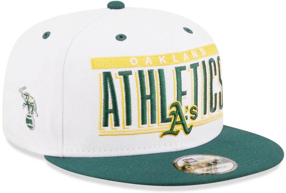 New Era Oakland Athletics Retro Title Snapback Cap White 9FIFTY 950 M L Basecap The description of this item has been automatically translated. If you have any questions, please feel free to contact us. Very nice snapback cap from New Era . Snapback=Adjustable closure at the back. Material: 100% Acrylic Wool Color Undervisor: like Brim Color New Era Flag: like Brim Color Snapback closure: like Brim Logo on Back:- Side patch: team logo About New Era : New Era Cap Company, Inc. was founded in 1920 and is the leading manufacturer of headwear and New Era apparel. The company launches products that transcend time, culture, sport and fashion. With a production run of over 35 million caps per year, New Era is the exclusive manufacturer and supplier of the official caps worn by Allen Major League Baseball teams and their minor league partners. In addition, there are agreements with other licensing partners. Among connoisseurs New Era is known for its characteristic 59Fifty cap style as the “Originator of the TrueFitted " known. The company is headquartered in Buffalo, New York, and operates facilities in Alabama, Canada, Europe, Japan and Hong Kong. New Era Cap is a “participating company” of the Fair Labor Association. DreamRobot Snapback=Adjustable closure at the back. New Era Cap Company, Inc. was founded in 1920 and is the leading manufacturer of headwear and New Era apparel. The company launches products that transcend time, culture, sport and fashion. With a production run of over 35 million caps per year, New Era is the exclusive manufacturer and supplier of the official caps worn by Allen Major League Baseball teams and their minor league partners. In addition, there are agreements with other licensing partners. Among connoisseurs New Era is known for its characteristic 59Fifty cap style as the “Originator of the TrueFitted " known. The company is headquartered in Buffalo, New York, and operates facilities in Alabama, Canada, Europe, Japan and Hong Kong. New Era Cap is a “participating company” of the Fai Marke Irie Daily Abteilung Unisex Erwachsene Farbe Mehrfarbig Größe Einheitsgröße Material Baumwolle Stil Baseballcap EAN 0196499572903
