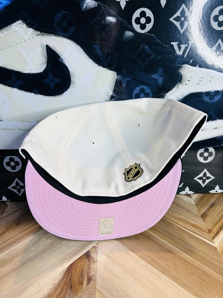 This New Era Prociety Rahnni Mighty Ducks NHL White Hat 7 3/8 in Pink UV Rare Sold Out is a must-have for any sports fan. The hat features an upside-down logo and is made of 100% polyester fabric, making it durable and comfortable to wear. It is perfect for any occasion, whether it's a game or a casual day out. The hat is designed with a solid pattern and is available in a classic white color. It is a men's accessory and is ideal for those who want to showcase their love for the Mighty Ducks. This hat is exclusive, rare, and sold out, making it a perfect addition to any collection.