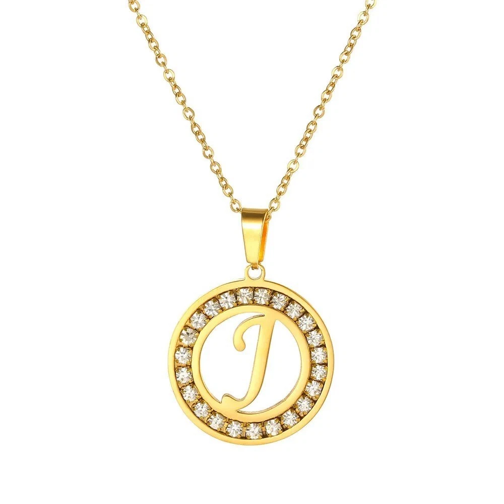 Fashion Gold Square Initial Letter Pendant Necklace, Bling Rhinestone Charm Gift