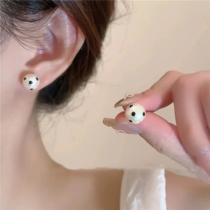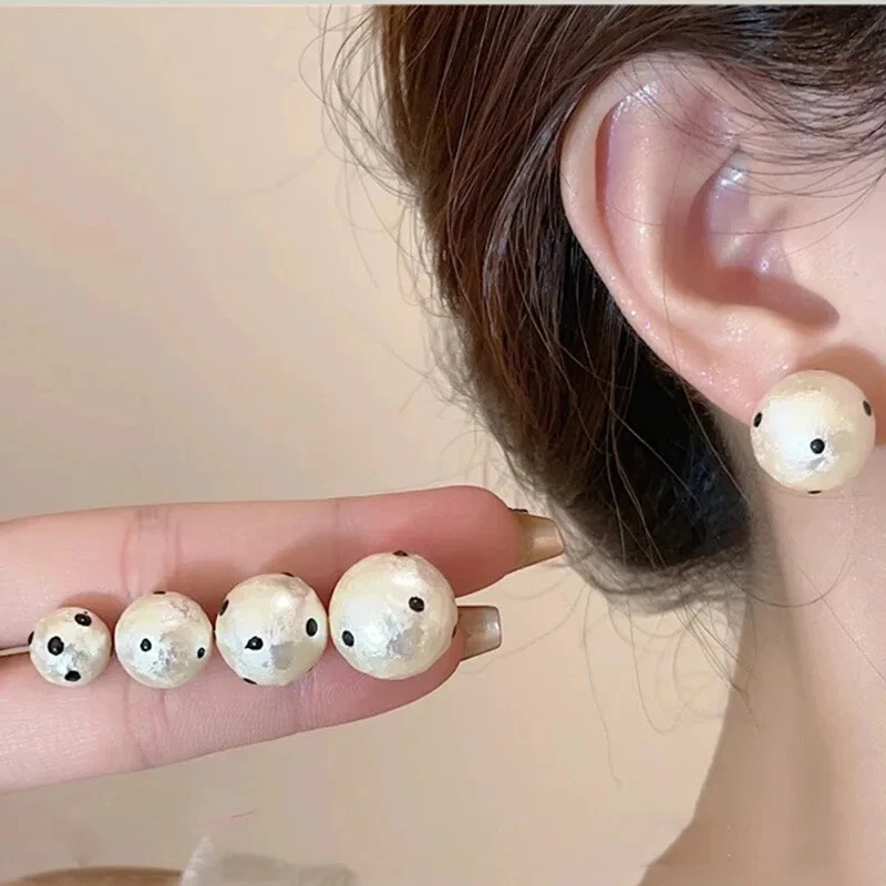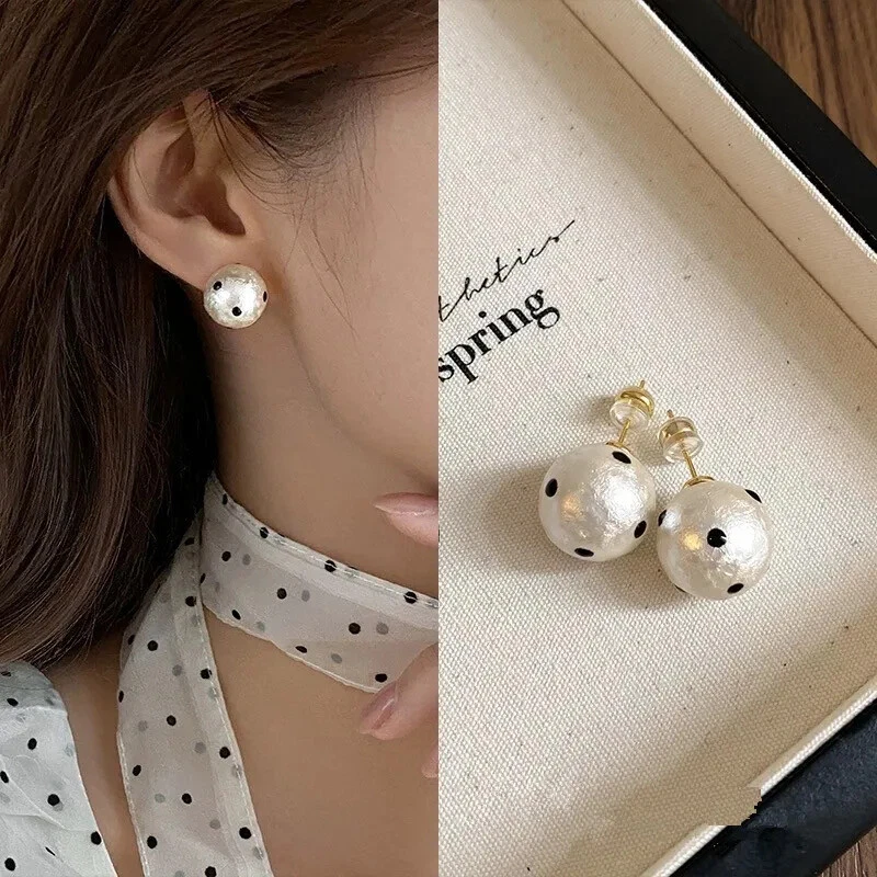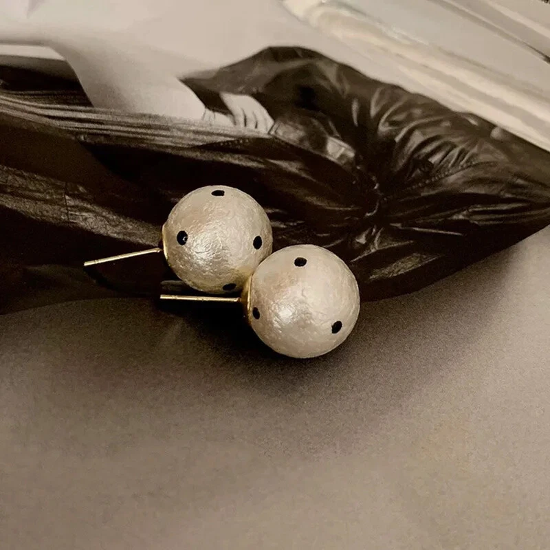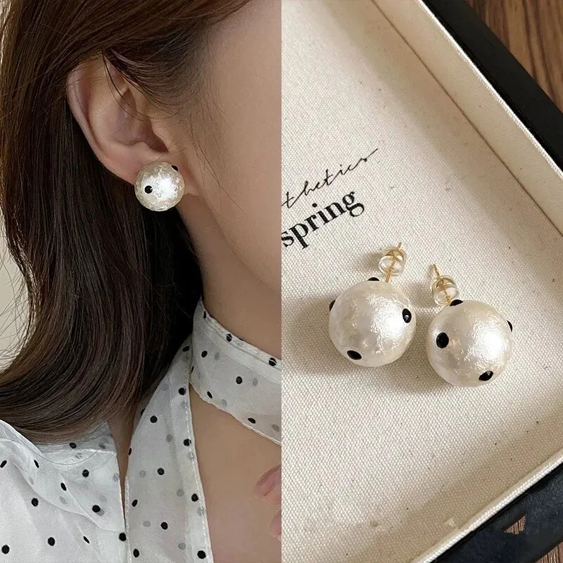 New French Polka Dot Cotton Pearl Earrings Light Luxury Temperament Niche Design