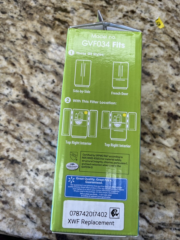 New Great Value GE Refrigerator Replacement Filter 6 Months Life Model GVF034. Condition is New. Shipped with USPS Ground Advantage.