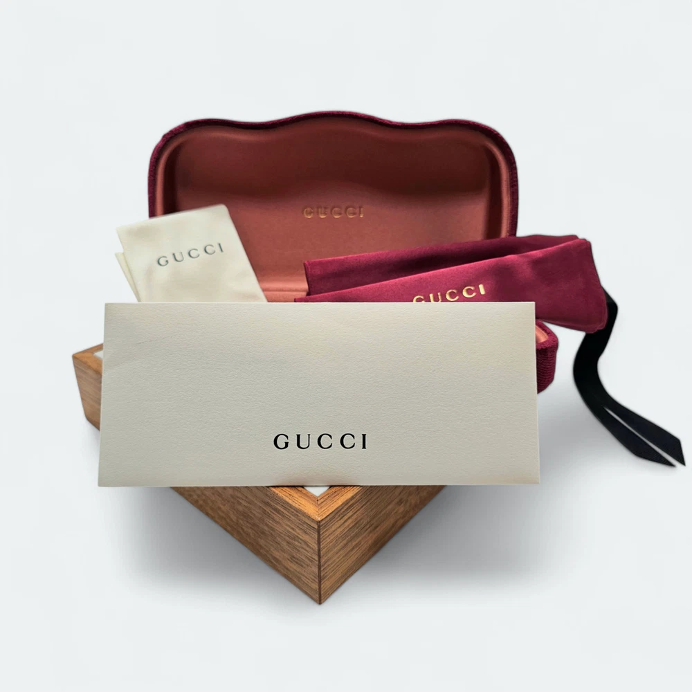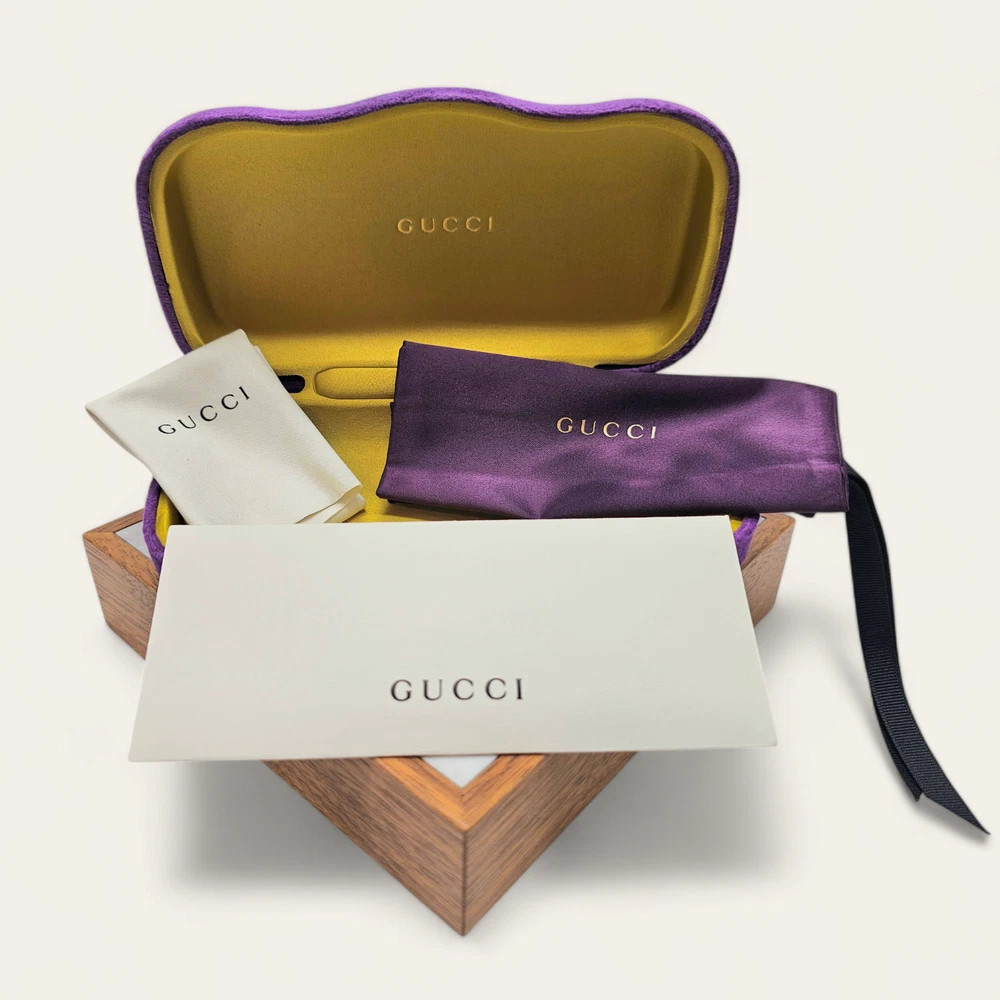 Authentic GUCCI Eyeglasses & Sunglasses Case Items Included: - Gucci Case - Gucci Micro-fiber Cloth - Gucci Soft Pouch - Gucci Certificate of Authenticity We really appreciate your business. We're here to help! Got a question? We’re just a message away, ready to assist you! Your experience matters to us and we're committed to making things right!