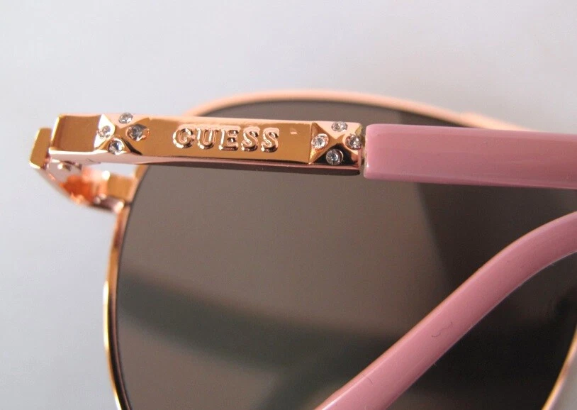 Guess Sunglasses *** New Authentic G UESS Co.*** --- Womens Sunglasses --- ---Generic Soft Pouch only included--- --- Model# GF0295 | 60-17-140mm --- --- Color: Rose Gold/Gold Mirror --- ***MSRP: $80.00*** 100% UV-blocking lenses Impact resistant C omfortable medium fit on your face Metal frame and arm temples COME WITH A Generic Pouch and SHIPPED WITH CARE Eye - 2-1/4" Bridge - 1/2" Vertical - 2" Temple Arm - 5-1/2" All of our listing items are authentic products All of our listing items are authentic products: we don't sell fake, imitated or 'inspired' products. Please have no doubt on this matter as we buy all from authorized importers or department stores. THANKS FOR LOOKING