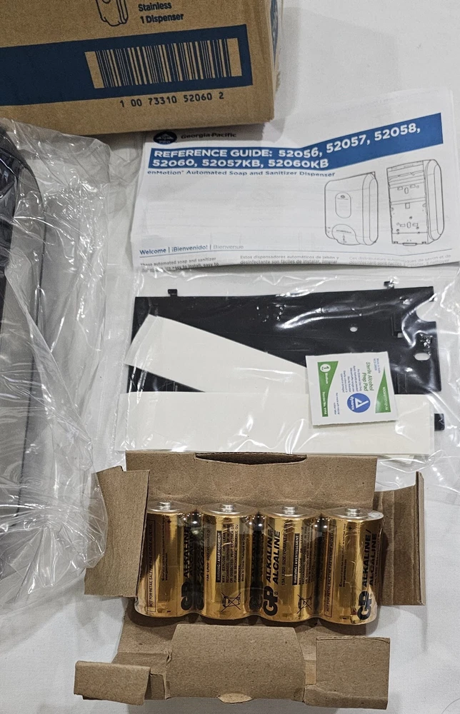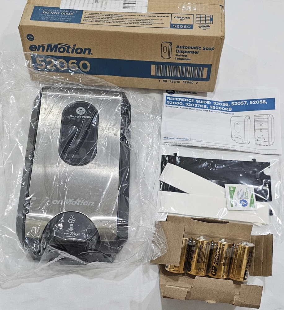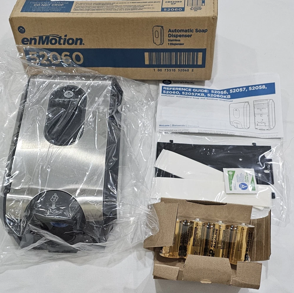 This Georgia-Pacific 52060 dispenser provides touch-less dispensing of soap and sanitizer. It is a brand new unit manufactured in the United States. The dispenser is designed to accommodate paper towel rolls and is suitable for use in various settings, including business and industrial facilities, as well as bathrooms. The unit comes with a unit quantity of one and is easy to install and use. Get your hands on this automated dispenser today and improve your facility's hygiene. This is a brand new seal pack item. Box has been opened just for pictures purposes. Any question feel free to contact me.