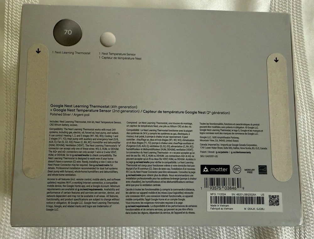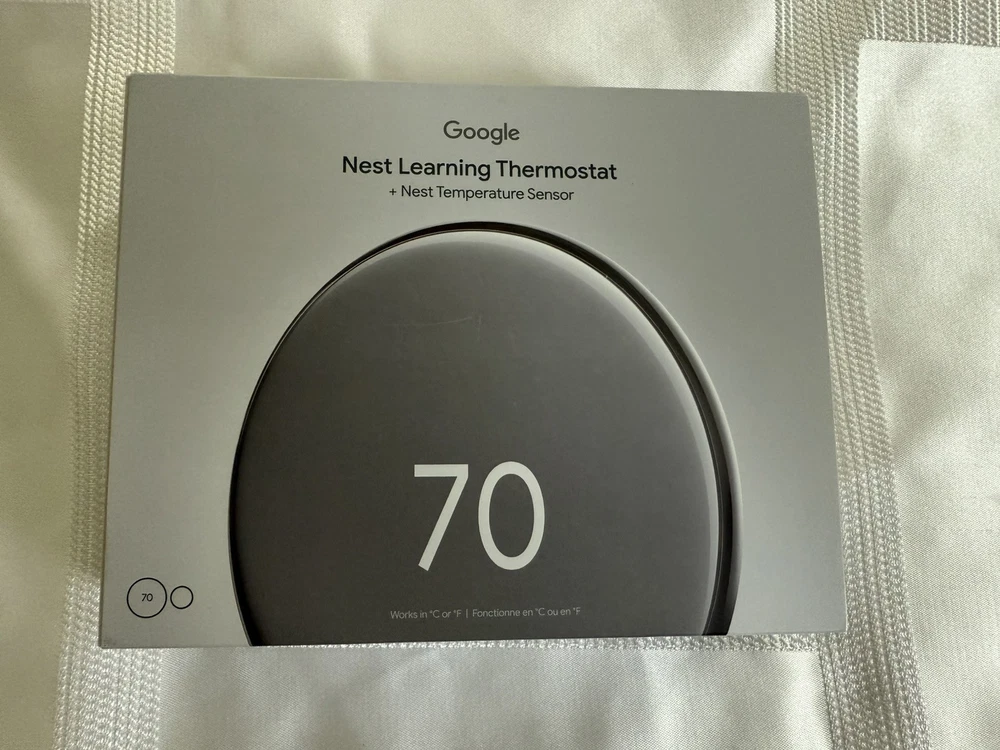 Sealed Google Nest Learning Thermostat (4th Gen, 2024) with Nest Temperature Sensor - Energy Saving Smart Thermostat with Adaptive Eco - Works with Alexa and Google Home App - Polished Silver