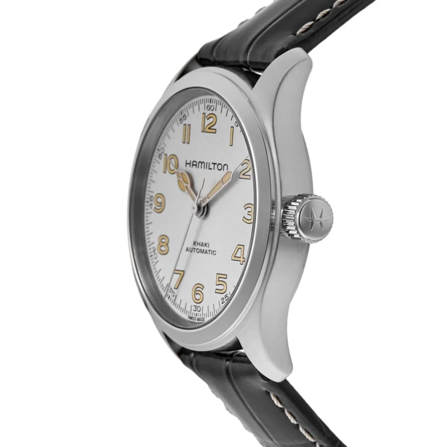 Hamilton Khaki Field Murph Automatic White Dial Leather Strap Men's H70405710 100% Brand New & Authentic Product Shipped Within 1 Day Top Seller Reviews speak for themselves Click to view Shop risk free with WatchMaxx Money Back Guarantee 2 Year Warranty Usually ships within 1 business day of receiving payment. We accept PayPal. For other payment options please contact us. Details Warranty Return Policy Shipping & Tax About Us Questions? Product Details Case Case Material Stainless Steel Case Description Brushed and Polished Stainless Steel Case Finish Brushed and Polished Case Shape Unique Case Diameter 38.00mm Case Thickness 11.10mm Case Back Transparent - See-Through Case Bezel Smooth Crystal Scratch Resistant Sapphire Crown Push-Pull Dial Dial Color White Dial Description Luminous Silver Tone Hands and Arabic Numeral Hour Markers with Minute Markers Around the Outer Rim on a White Dial Dial Markers Arabic Hand Color Silver Functions Power Reserve and Hour, Minute, Second Movement Movement Type Automatic Self Winding Engine Hamilton Calibre H-10 Power Reserve Approx. 80 Hours Movement Description Swiss Automatic Additional Information Water Resistant 100 Meters - 330 Feet Style Fashion Warranty 2 Year WatchMaxx Warranty Band Band Material Leather Band Finish Calfskin Band Color Black Band Description Black Calfskin Leather Strap Band Type Strap Clasp Type Tang Clasp Description Brushed and Polished Stainless Steel Additional Info Also known as 70405710 Warranty The length of the warranty period for all items are specified in the item details, and are guaranteed from the date of purchase. Warranty covers only defects in manufacturing or materials, movement, and battery replacement. Warranty excludes scratches or changes to the finish, damage to the glass, crystal, crown, stem, case, strap, or bracelet. Damage caused by excessive wear-and-tear and/or physical abuse, or resulting from wear under conditions exceeding the manufacturer's water resistance limitations is excluded from the warranty. WatchMaxx will repair the product, including the cost of all parts and labor during the warranty period. WatchMaxx will return the repaired or replacement item at no charge to the customer. Warranty return parcels must be clearly labeled with a return authorization number obtained by contacting WatchMaxx customer service. Parcels without a clearly visible valid return authorization number will be refused. Goods must be returned via a traceable carrier, such as FedEx, United Parcel Service (UPS) or the United States Postal Service (USPS), with insurance and delivery prepaid by the purchaser. Parcels shipped collect will be refused. The customer is liable for loss or damage in transit. WatchMaxx disclaims any liability for consequential or incidental damages for breach of written or implied warranty of this item, including merchantability or fitness for a particular purpose. This warranty gives you specific legal rights and you may have other rights that vary from state to state. Some states do not allow the exclusion or limitation of incidental or consequential damages, so the above limitation may not apply to you. Return Policy After receiving the item, contact seller within: 30 days. Refund will be given as: Money back. Return shipping: Seller pays return shipping. All items purchased from WatchMaxx may be returned with the following conditions, except those marked as "Final Sale": Merchandise must be returned within 30 days of receipt, in original, unused condition with all original tape, plastic protectors, and stickers intact and having never been removed. All returned items, whether for refund, repair or exchange, must be clearly labeled with a return authorization number obtained by contacting WatchMaxx customer service via email to WatchMaxx. Parcels without a clearly visible valid return authorization number will be refused. Goods must be returned via a traceable carrier, such as FedEx, United Parcel Service (UPS) or the United States Postal Service (USPS), with insurance and delivery to WatchMaxx prepaid by the purchaser. Parcels shipped collect will be refused. The customer is liable for loss or damage in transit. Refund of the purchase price will be issued in the same form as payment received. WatchMaxx policy is to attempt to contact the purchaser for 3 business days to resolve delivery problems or if delivery was refused. After 3 business days, such items will be regarded as returned and eligible for refund subject to the conditions above. Shipping in the USA Expedited Shipping & Insurance Free Next Day Air Shipping & Insurance $15.00 Sales Tax Taxes may be applicable at checkout. Please refer to eBay policies. International Shipping We offer a flat shipping & insurance charge of $49.99 per order. We ship via expedited shipping that usually arrives within 2-4 days. For shipping to Russia, allow up to two weeks for delivery (USPS does not guarantee delivery times). WatchMaxx charges only for the product and shipping to international delivery destinations. The shipping documents and invoice will show the actual purchase price according to local and international law. Any duties or taxes, including GST or VAT taxes, are the sole responsibility of the purchaser. These charges, if any, are usually collected by either the carrier or local customs authority when the order reaches the destination country, prior to delivery of the order. Please contact your local customs authority for details before placing your order. About Us We are a family owned business with over 20 years of experience selling fine watches, and have been selling investment-quality timepieces online since 2004. Today, WatchMaxx is among the leading online retailers of luxury watches. We are proud of our reputation, and enjoy high ratings by independent sources and customers. Everything we sell is 100% genuine, with no fakes, copies, replicas or any other deception. Every item ships in the original manufacturer's packaging. 