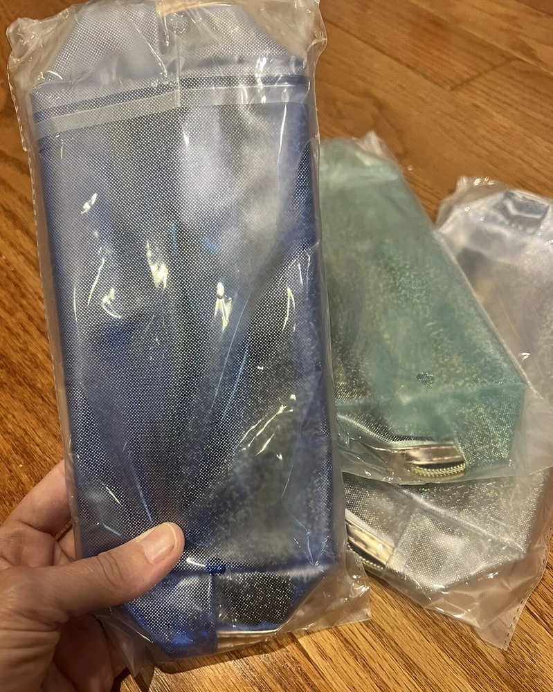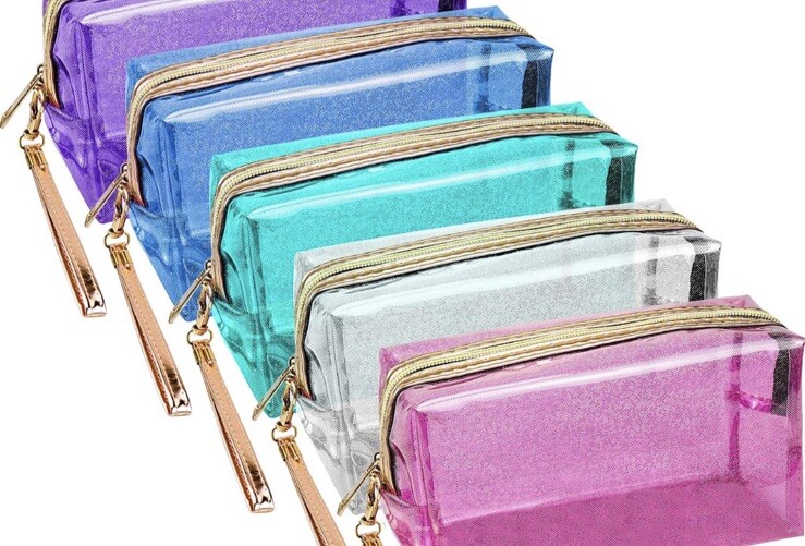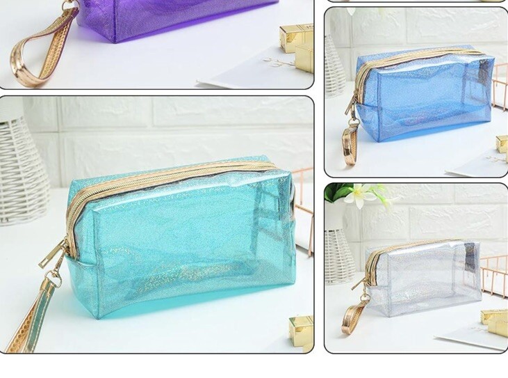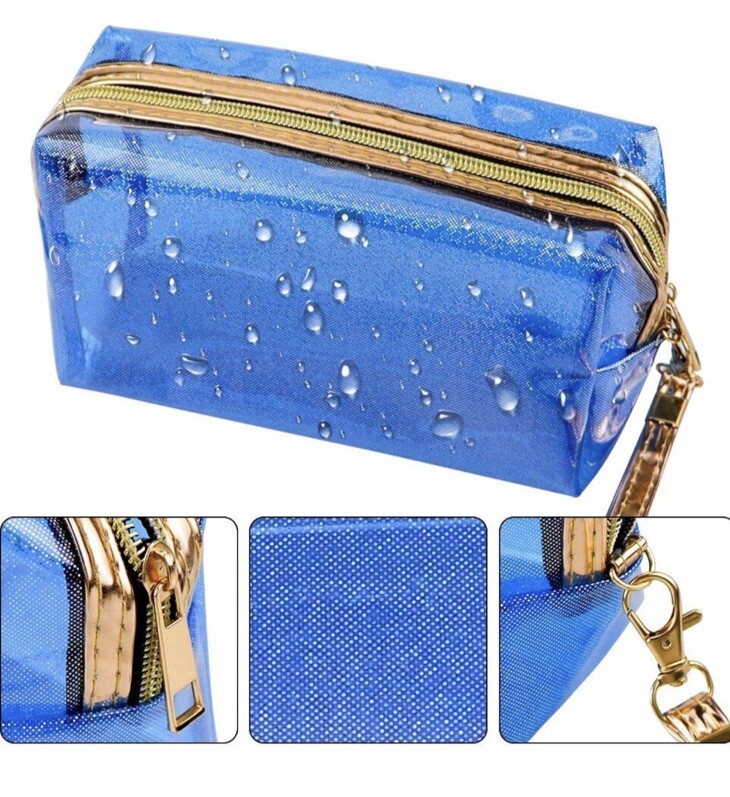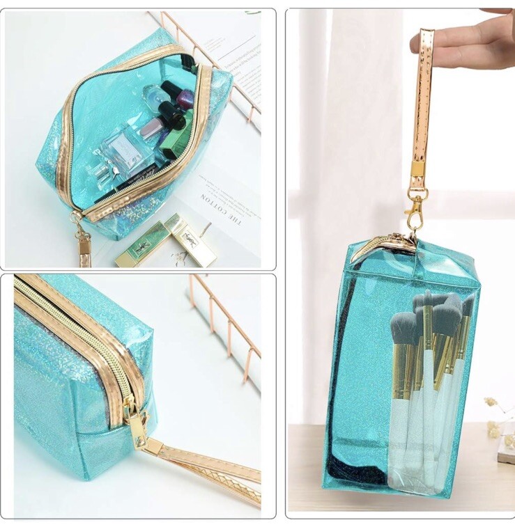 New Wrapped Set Of 3 Waterproof Cosmetic Wristlet Bags Translucent Metallic.