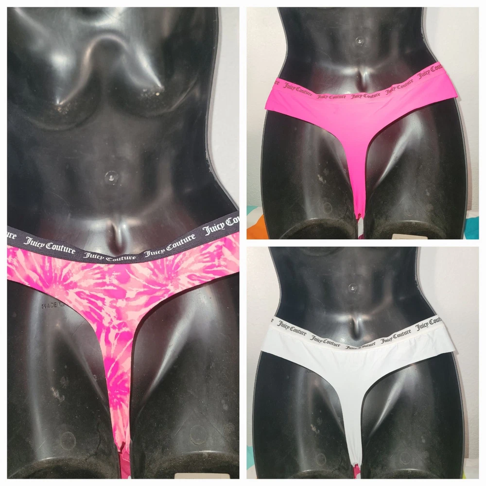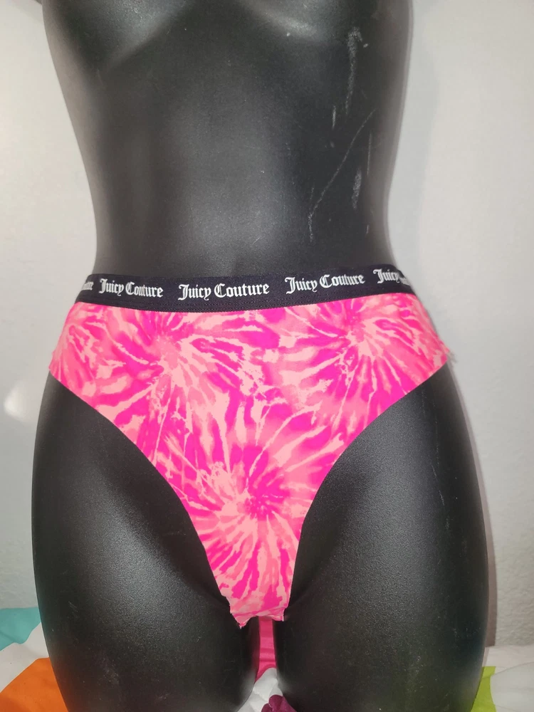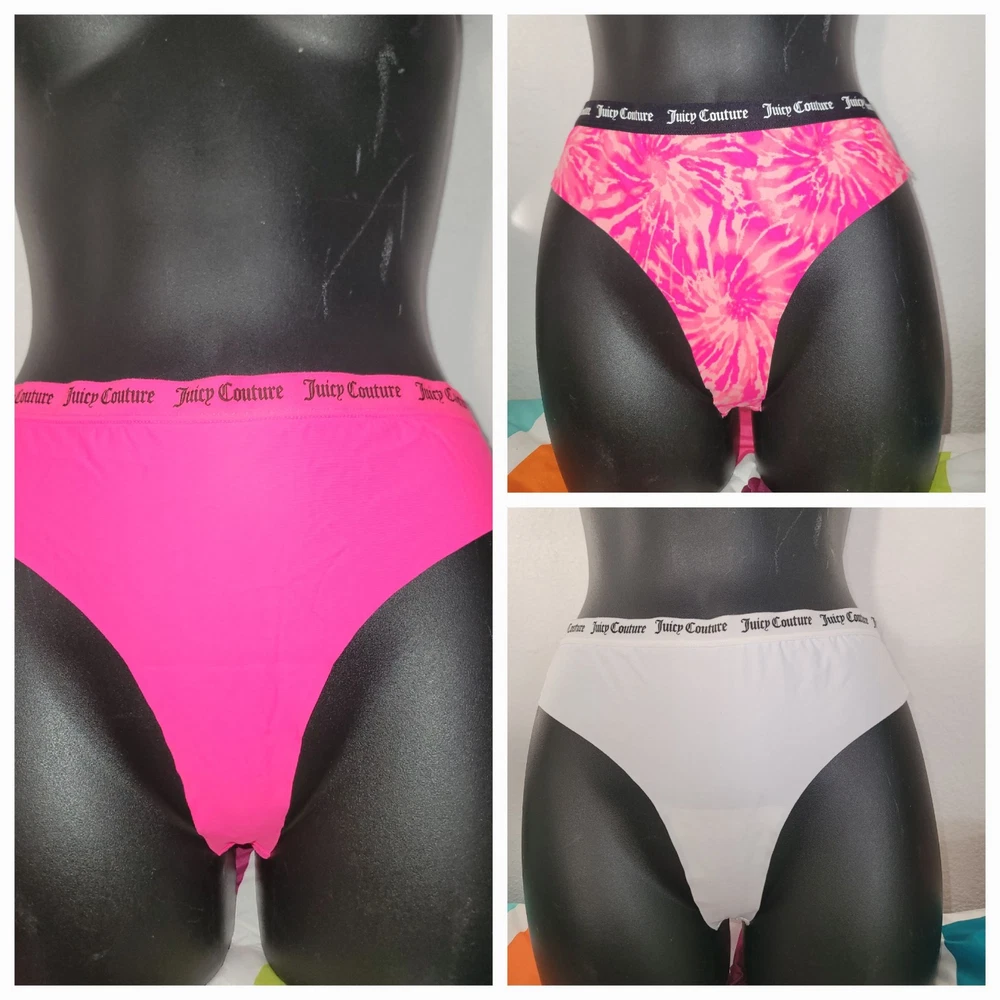 New Juicy Couture Thong Panties Womens Size ( L ) 3 Pair Logo Multicolor