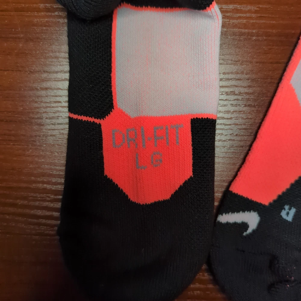 KD Nike Hyper Elite Socks Orange/Black Size Large Brand new without tags 100% Authentic Fast Shipping: Ships in 1-2 business days from Illinois Many colors available, check out my page to see them all Message me with any questions The Nike Elite Basketball Crew Socks feature Dri-Fit fabric that keeps your feet cool and comfortable. It’s made for durability and offers a supportive and snug fit. The Nike Elite Basketball Crew Sock is a must own for any basketball player. Perfect for basketball, volleyball, and other sports Pair different colorways with your Kobe's, Lebron's, KD's and more. Performance basketball crew socks deliver superior fit and comfort. Strategically placed cushioning absorbs impact Dri-Fit technology helps keep feet feeling dry and comfortable. Left/right anatomical design for targeted comfort. Ventilation zones promote breath-ability to keep you cool 63% polyester, 18% nylon, 16% cotton, 3% spandex Size Guide Small: Youth 4-6 Medium: Men's 6-8 Large: Men's 8-12 Extra Large: Men's 12-15