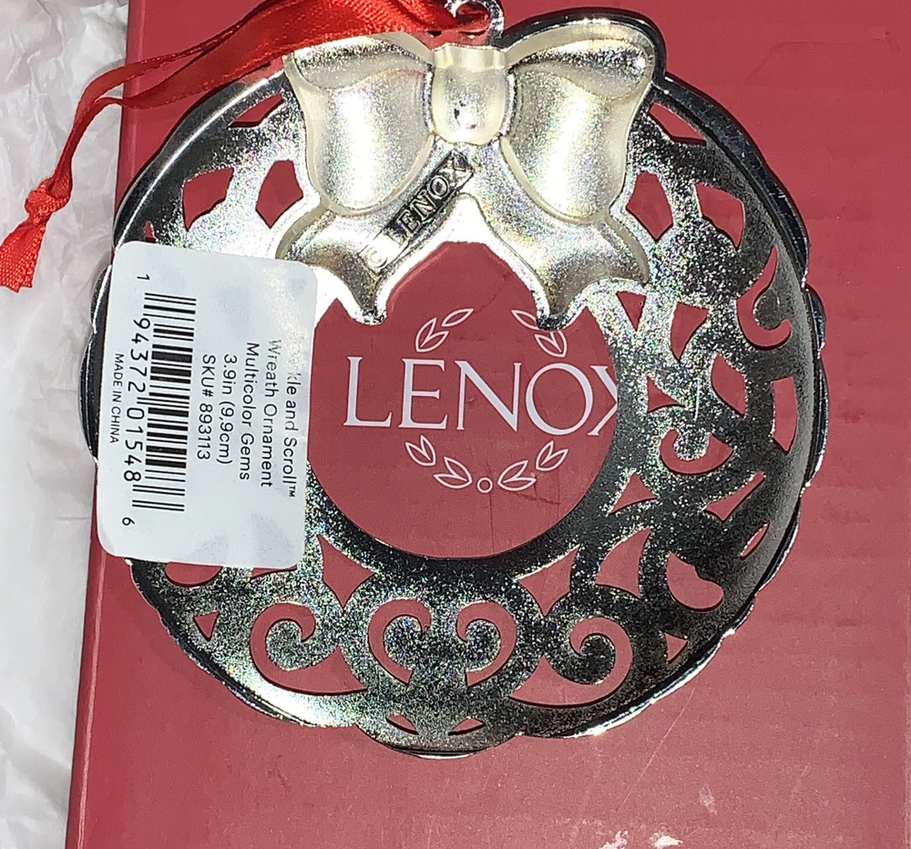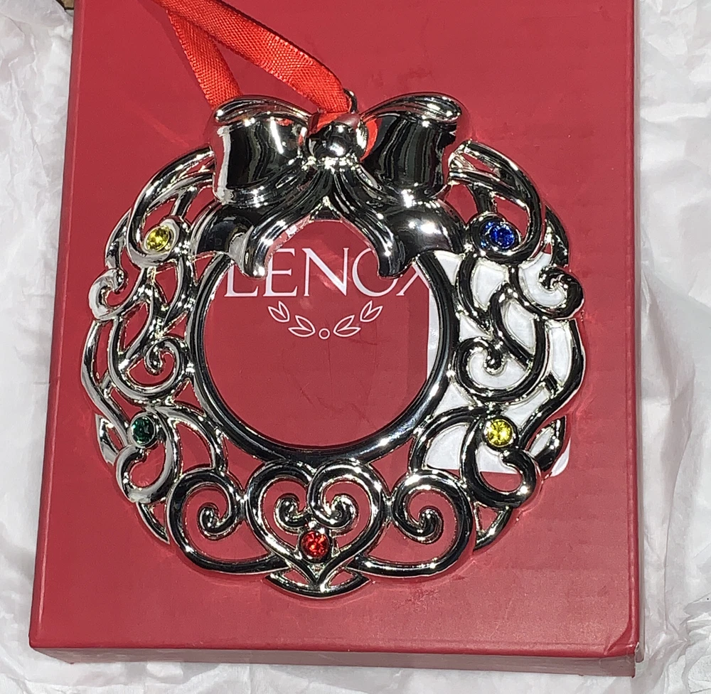 LENOX - Sparkle & Scroll Collection - Silverplated WREATH Ornament - Multi-Color. NIB Great Gift for anyone in your life this holiday season. A gorgeous collectors item. Give it to Grandma, to your child’s teacher, your sister in law, the possibilities are endless on the “who would love it” list! If you’d like more photos or have any inquires feel free to contact me at any time.